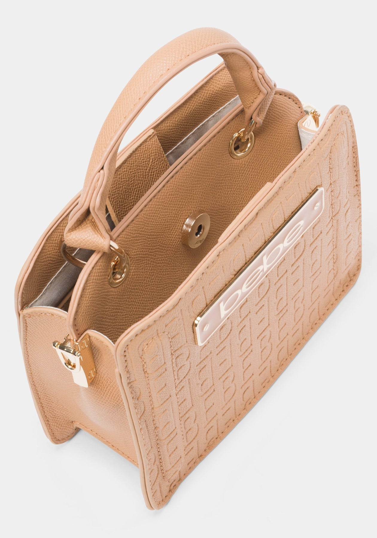 Compact and elegant, this satchel features gold hardware, a removable PU strap, and a matching card case for versatility.