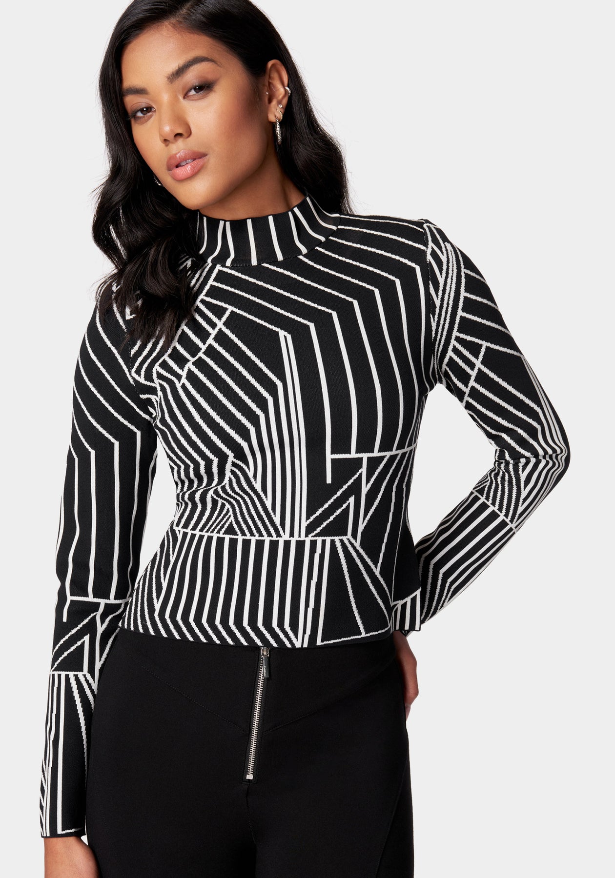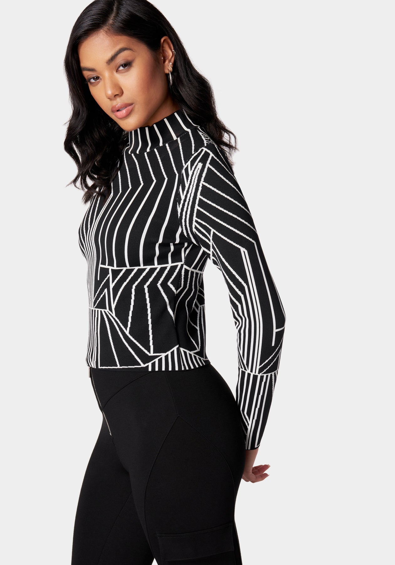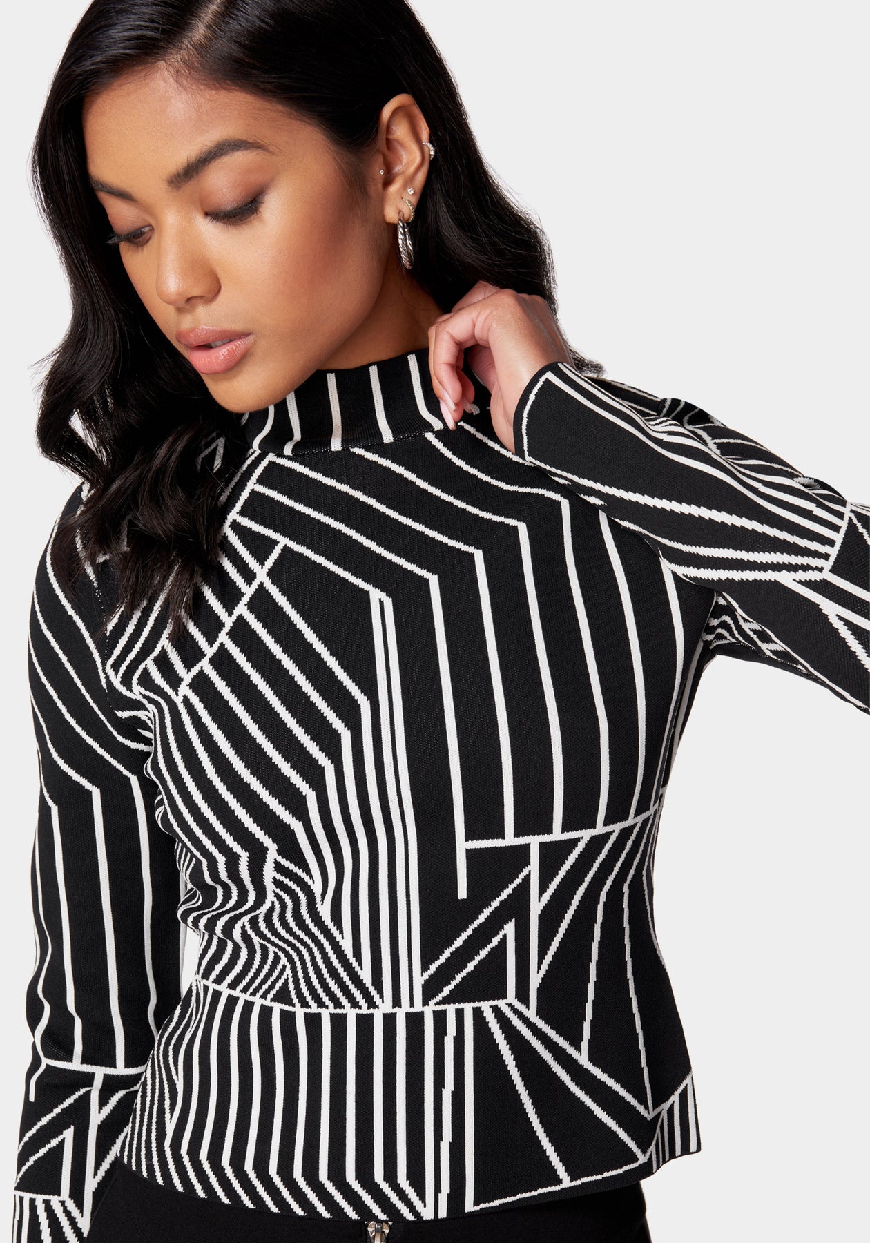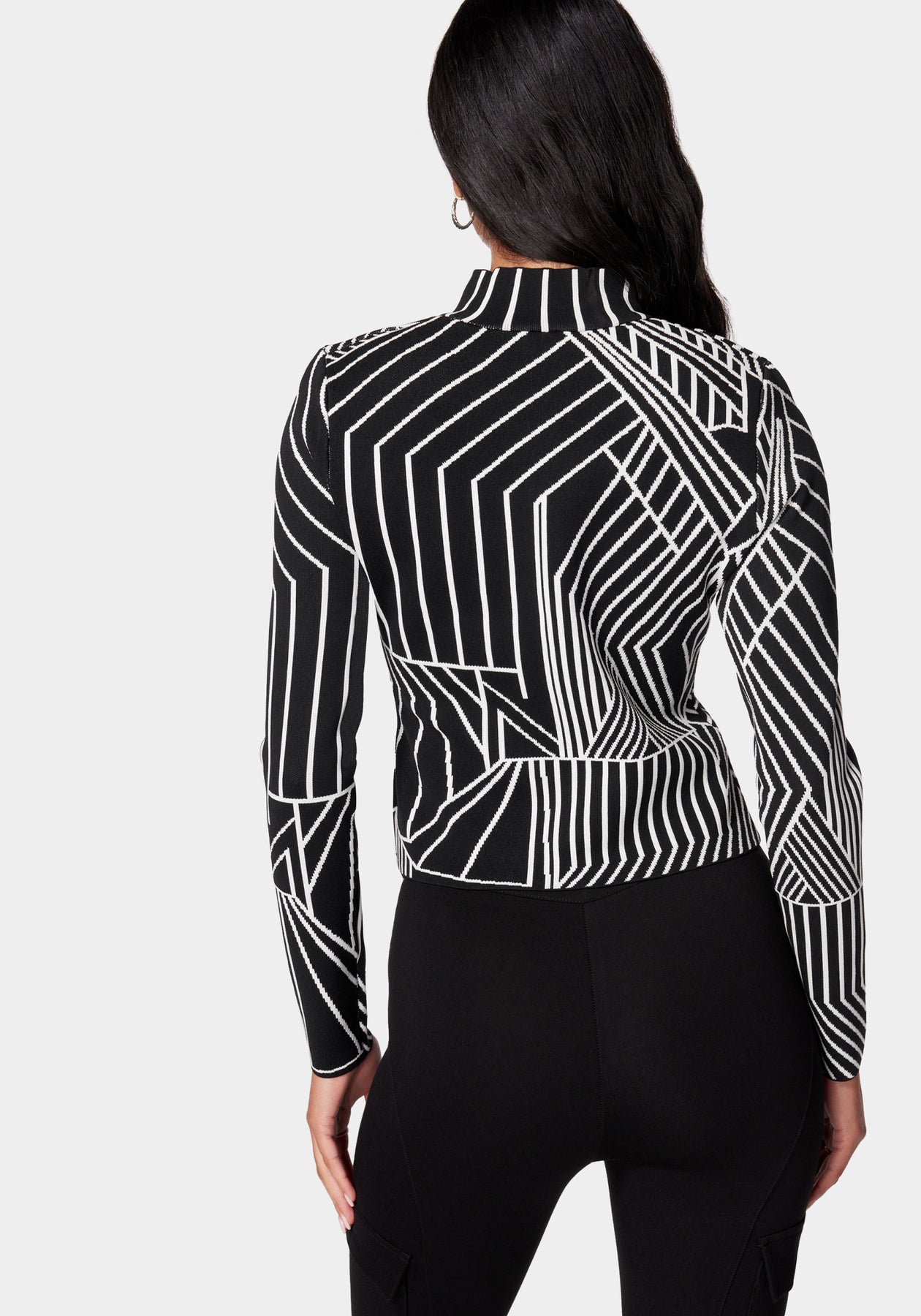 Indulge in style with our abstract jacquard mock neck sweater. Featuring a unique abstract jacquard pattern, this sweater is a standout piece for any wardrobe. The snug but comfortable mock neck design adds an extra level of warmth, making it the perfect choice for chillier days.
