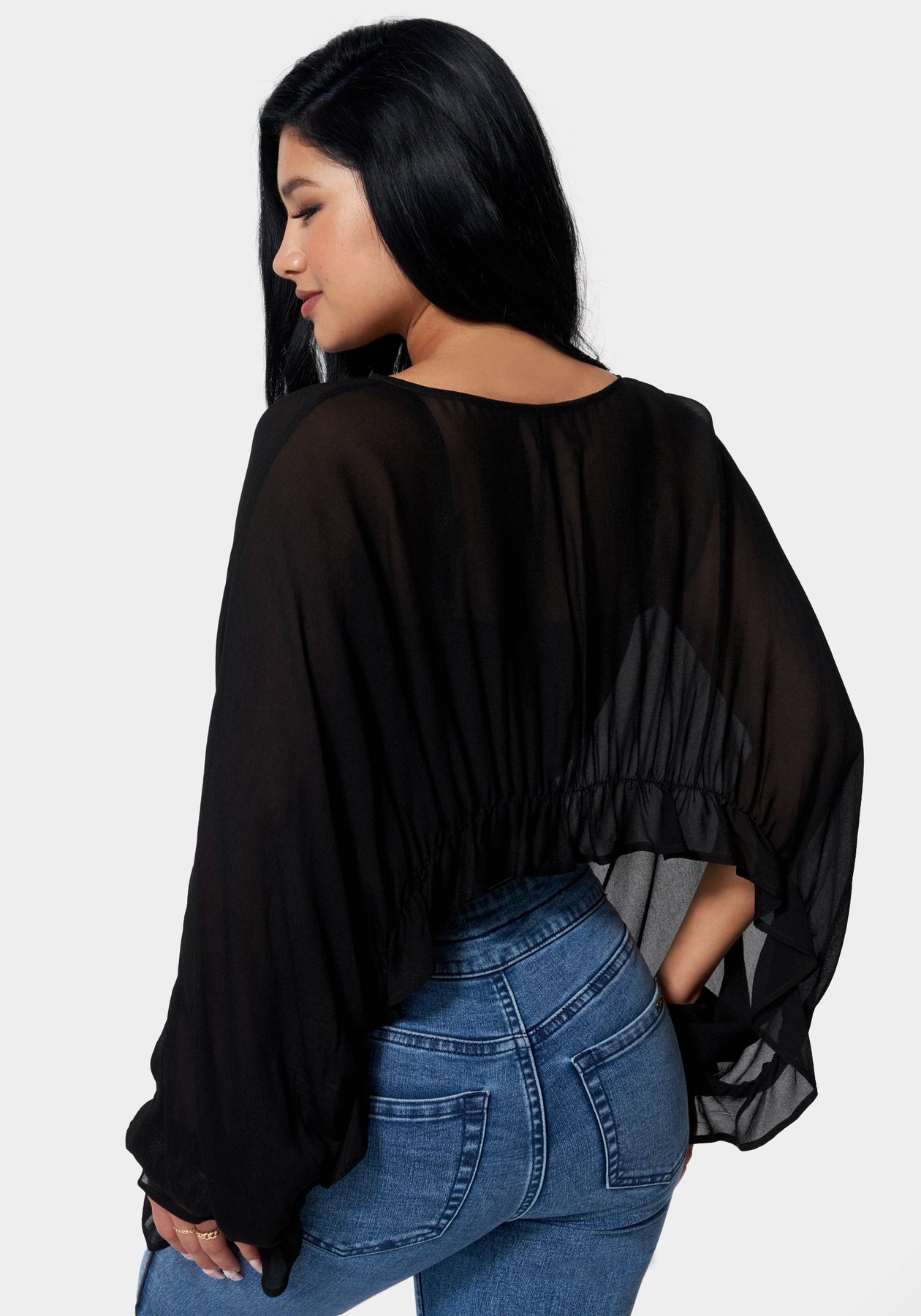 Take it from the top. Made in a soft chiffon, this blouse is featured in a flowy, vintage-inspired design with ruffle detailing throughout for added dimension.
