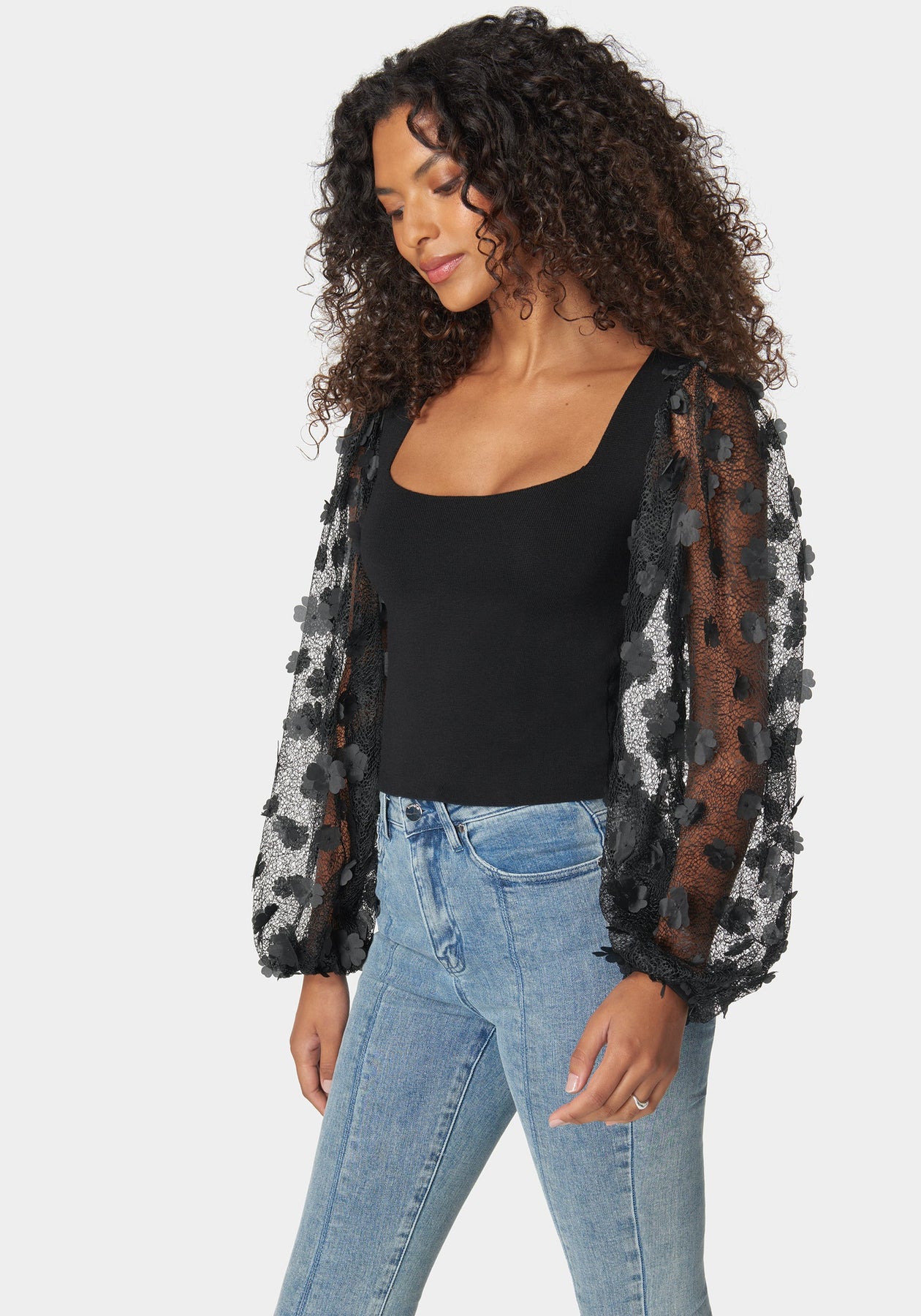 Make a statement with our Embroidered Sleeves Square Neck Sweater in Black. The square neck and embroidered sleeves add a sultry and romantic touch, perfect for adding some allure to your sweater collection.