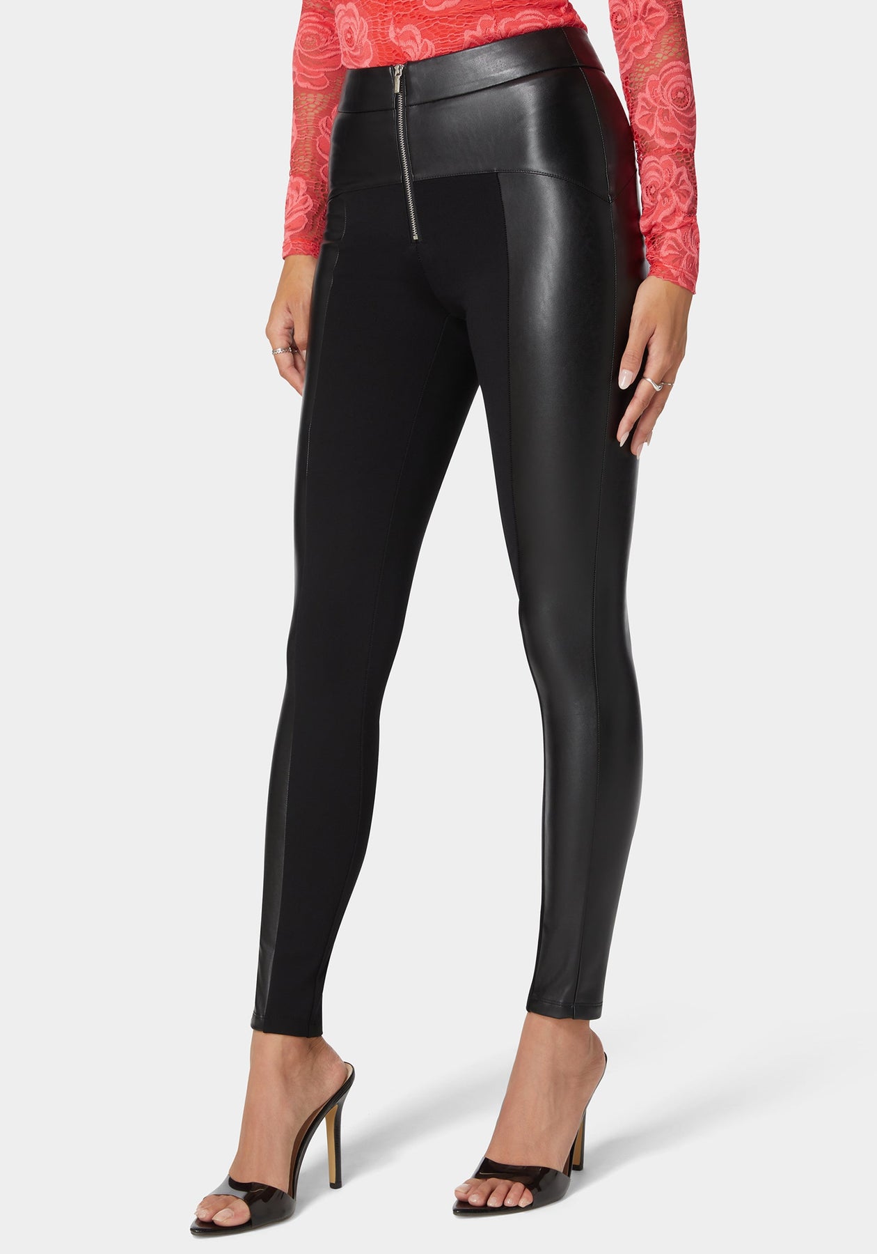 Embrace the daring duality of style in the High Waist Vegan Leather Combo Legging. Crafted for the bold at heart, these leggings fuse the slick, audacious appeal of vegan leather with a high-waisted design that accentuates your form. They stand as a testament to unspoken allure and unparalleled chic, creating a striking visual narrative of strength and sophistication. Perfect for crafting entrances that leave lingering glances in your wake.