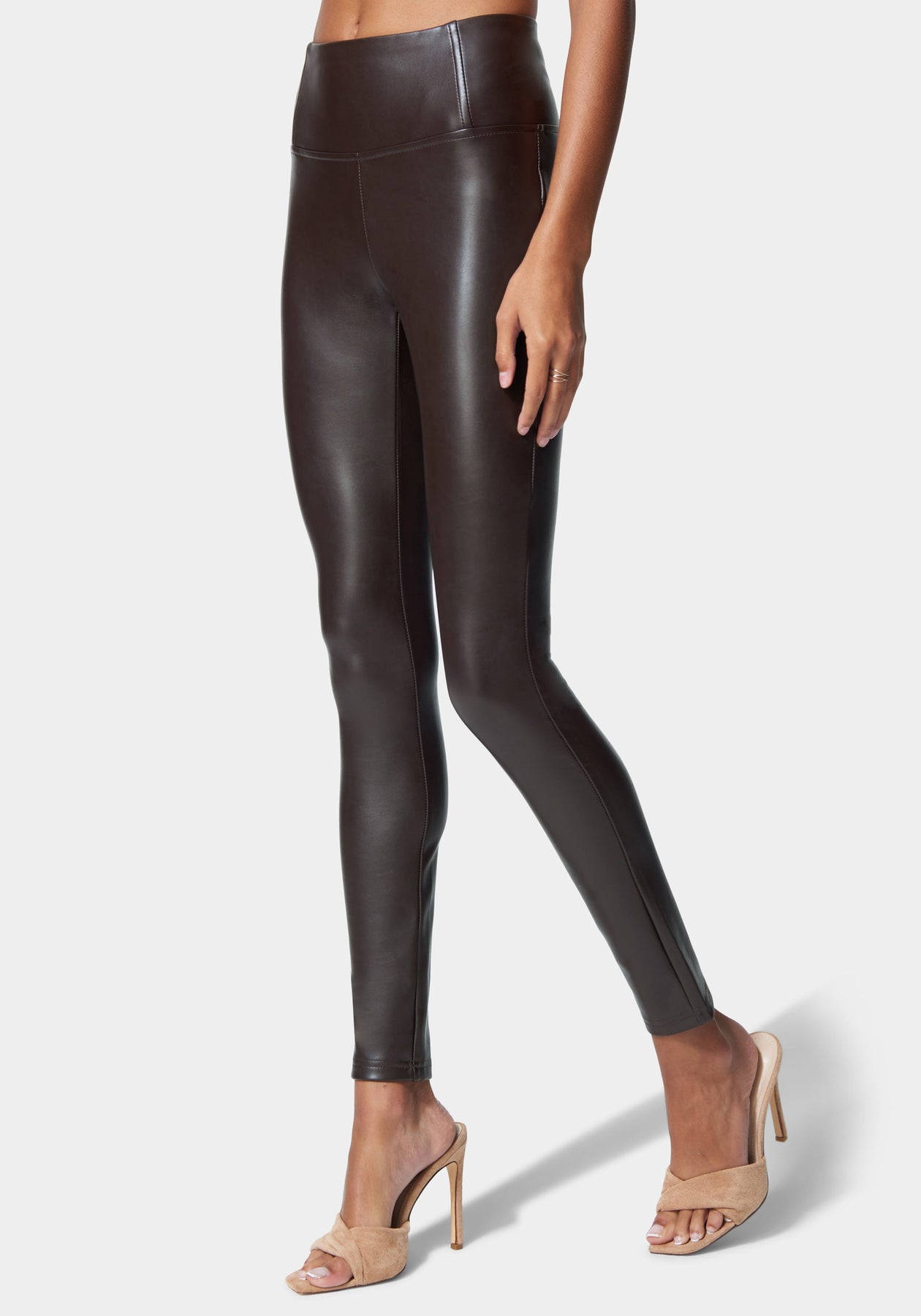 Have some fun with vegan leather. These High Waist Vegan Leather Leggings feature a hidden contoured waistband and a form-flattering fit.