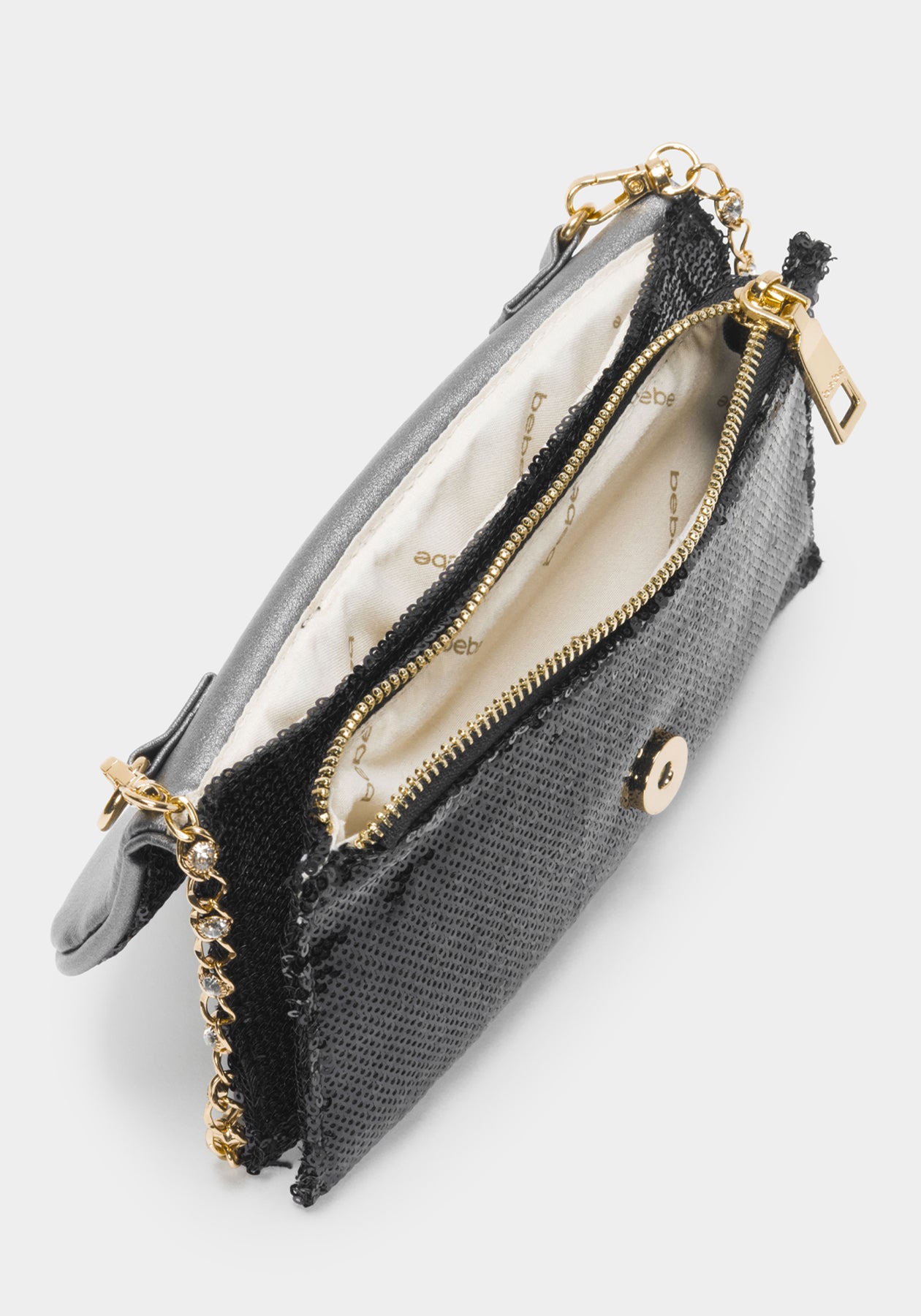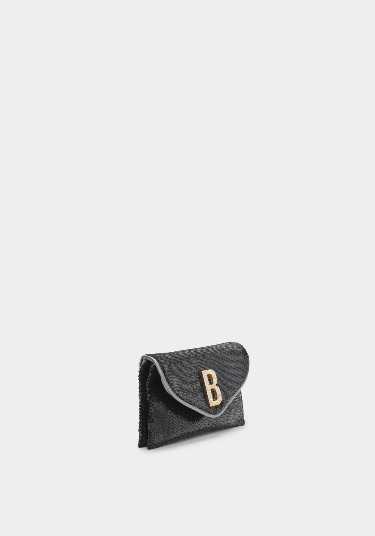 Capture the night with the Miro Sequin Clutch. This dazzling black clutch, lit by a golden "B" for bebe, is a tribute to glamour and sophistication. It's your perfect plus-one for evenings where making a statement is on the agenda.