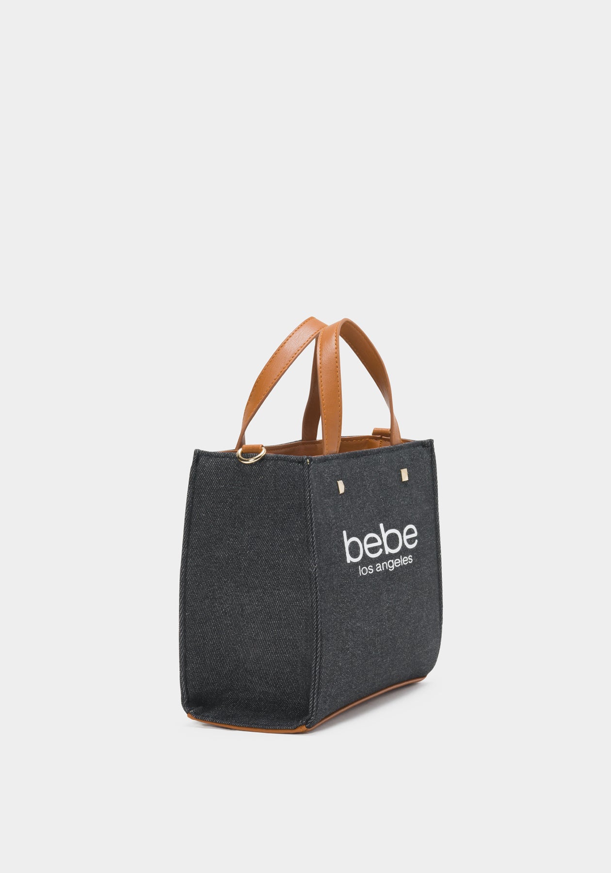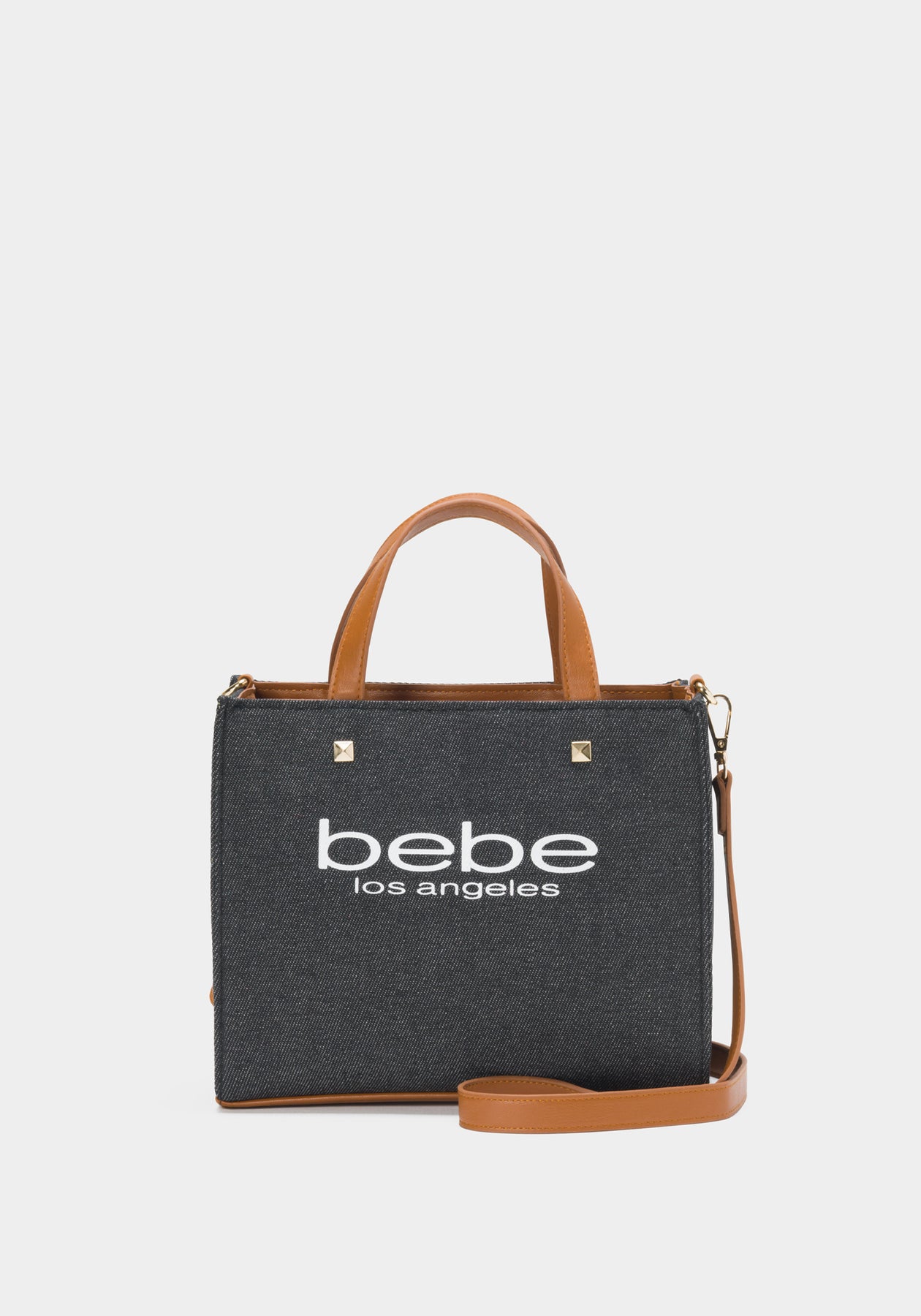 Embrace a touch of casual sophistication with the Rian Canvas Satchel, showcasing a striking white bebe logo. This bag seamlessly blends practicality with style, making it a perfect companion for any occasion.
