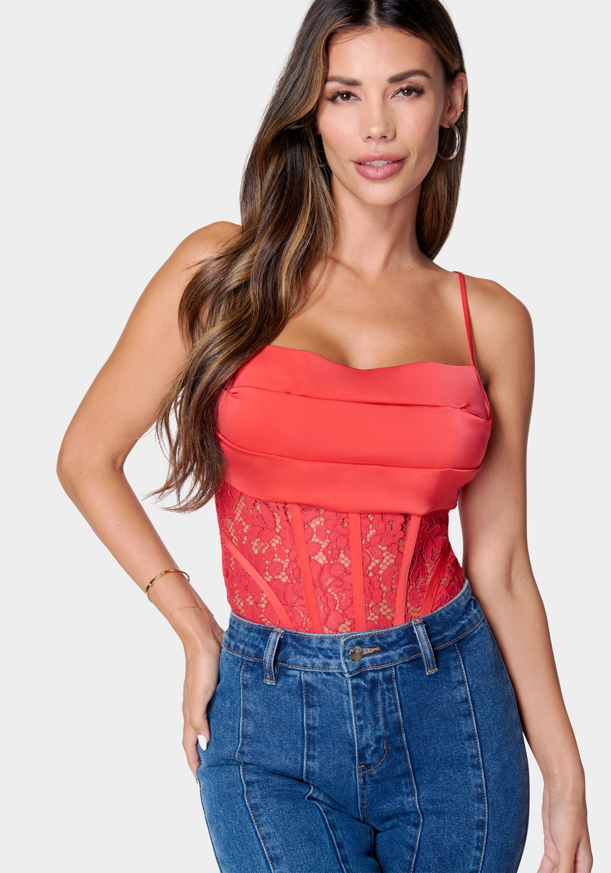 Opt for elegance with our satin draped lace corset top. This piece blends luxury and artistry with its satin fabric and delicate lace. Ideal for those seeking to add a touch of sexy opulence.