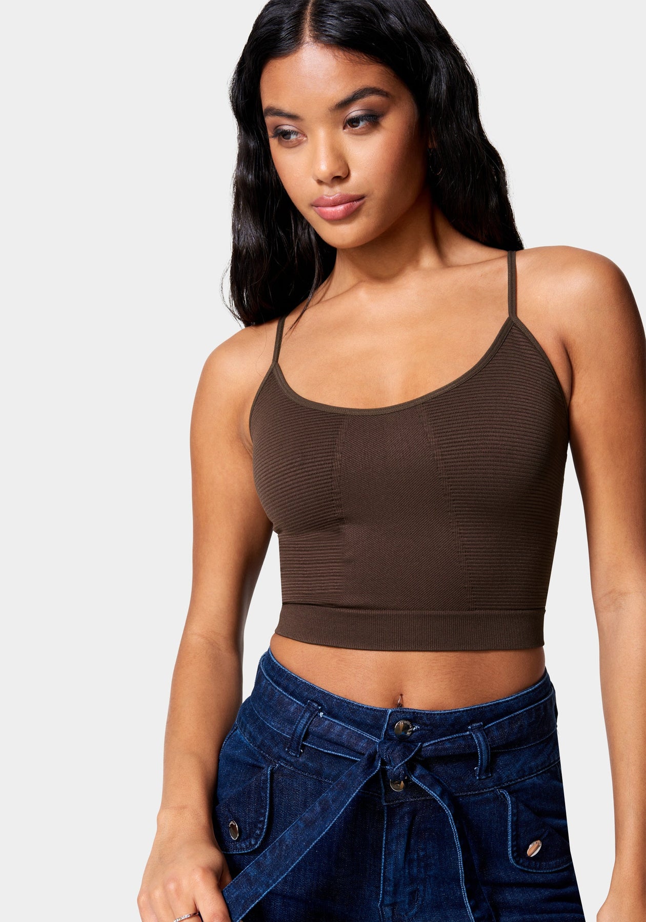 Get back to the basics. This seamless bralette features a scoop neck, cropped silhouette, and adjustable straps for the perfect layering piece in your wardrobe.