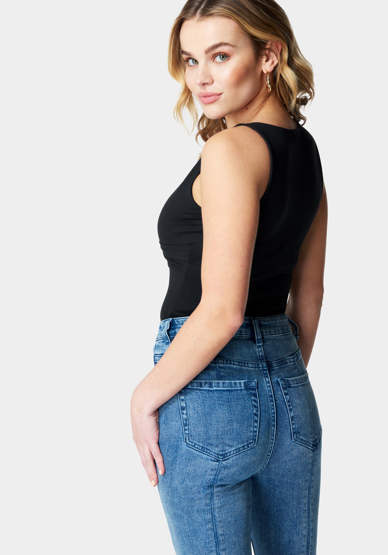 A gorgeous knit top features a plunging neckline and second-skin fit. Pair with your favorite bebe denim for the perfect dinner or night-out look.