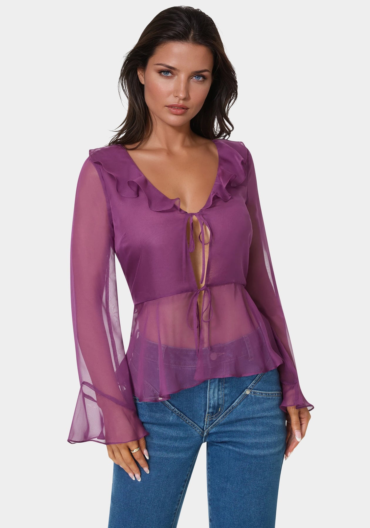 Chiffon Fit & Flare Tie Front Blouse