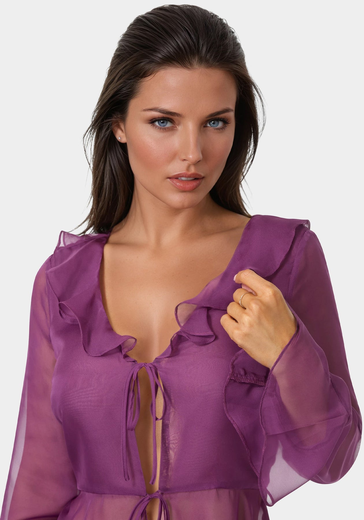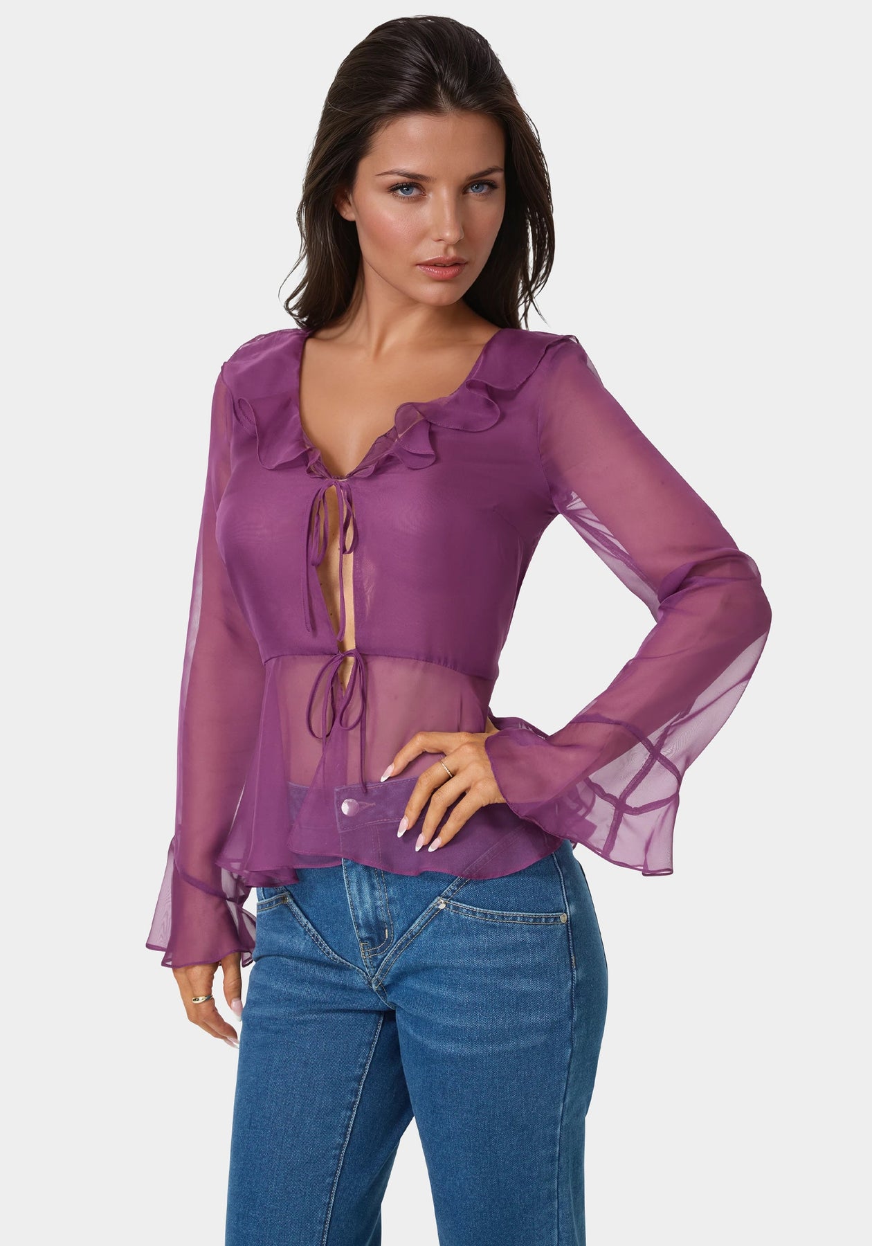Float from day to night in this ethereal Chiffon Fit & Flare Blouse. Its tie front detail adds a playful touch to the otherwise sophisticated silhouette.