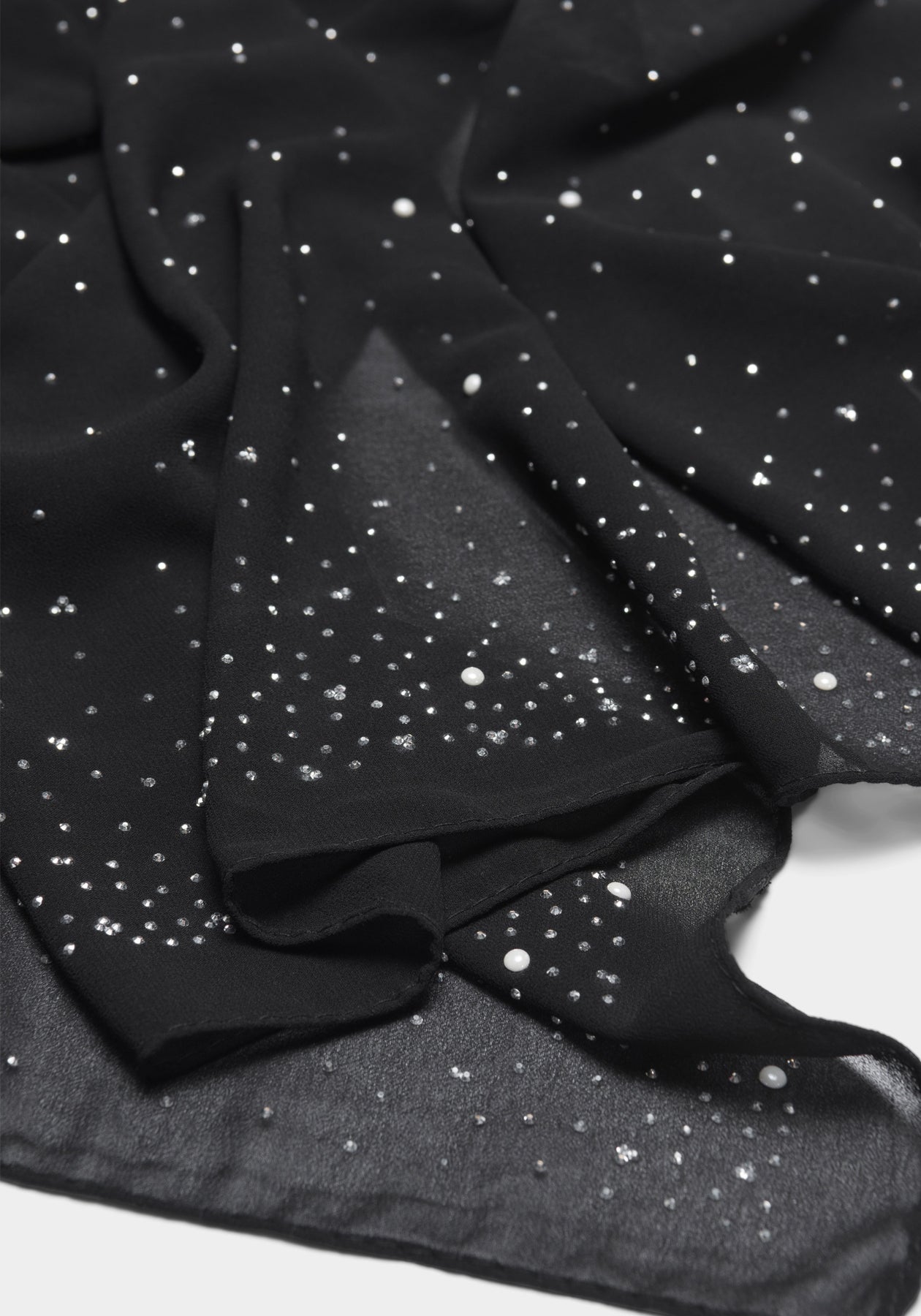 Adorned with dazzling bling and lustrous pearls, this scarf will become your go-to accessory for both day and night engagements.