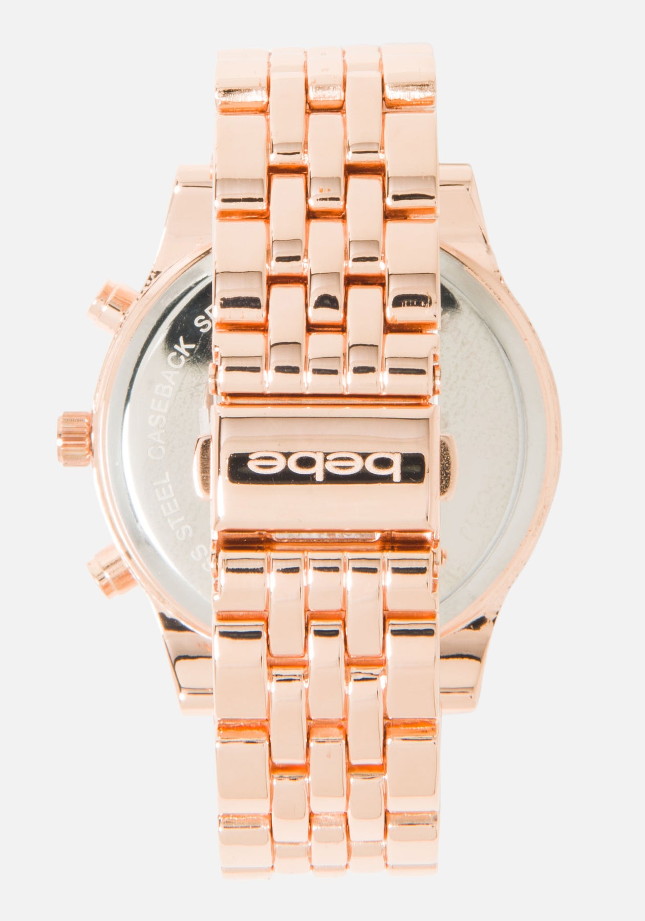 Fashion, function, and value, ladies Rosegold crystal bezel watch.