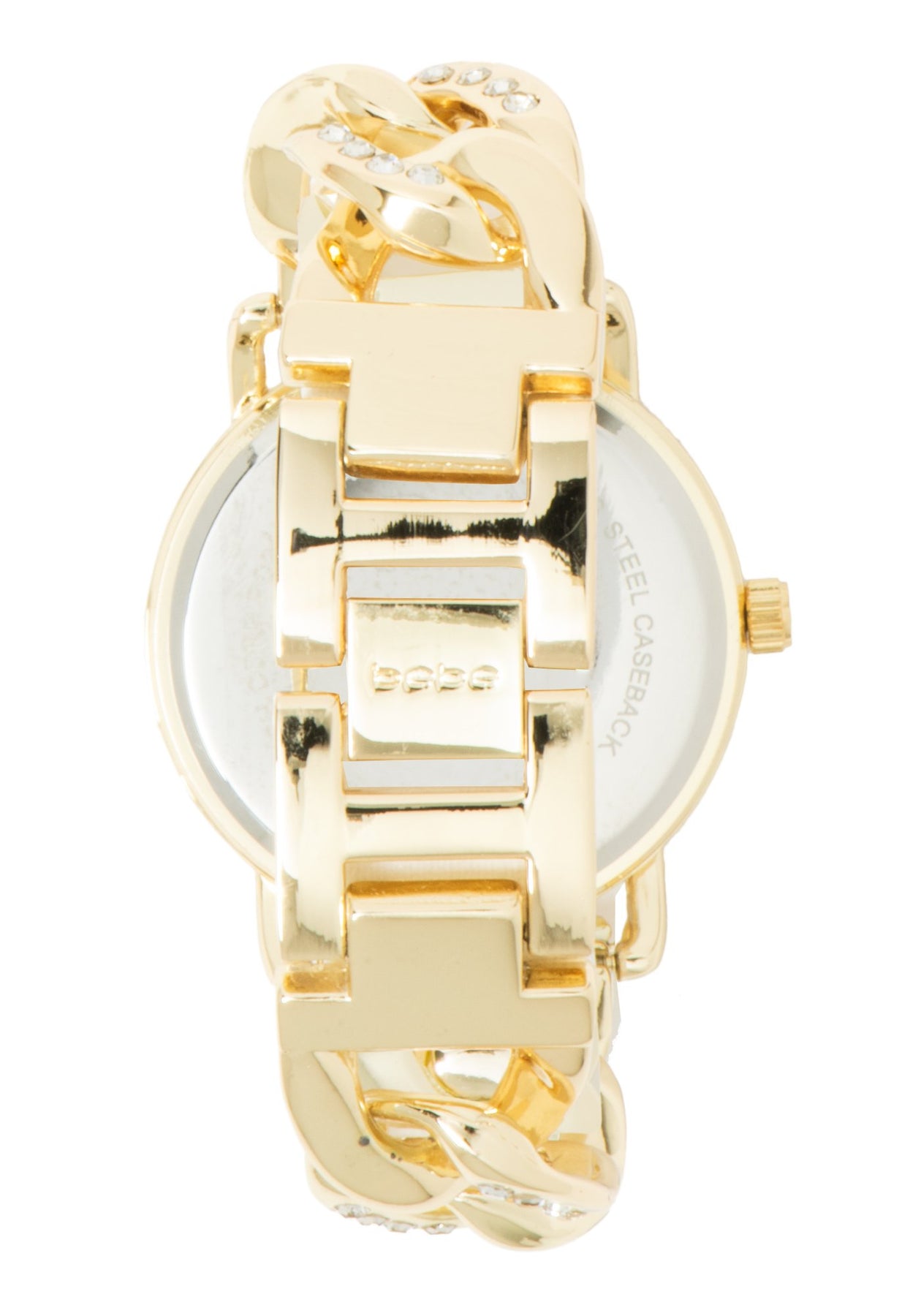 Chic and glamorous, this watch has a chainlink strap and a crystal detail on the strap and face.