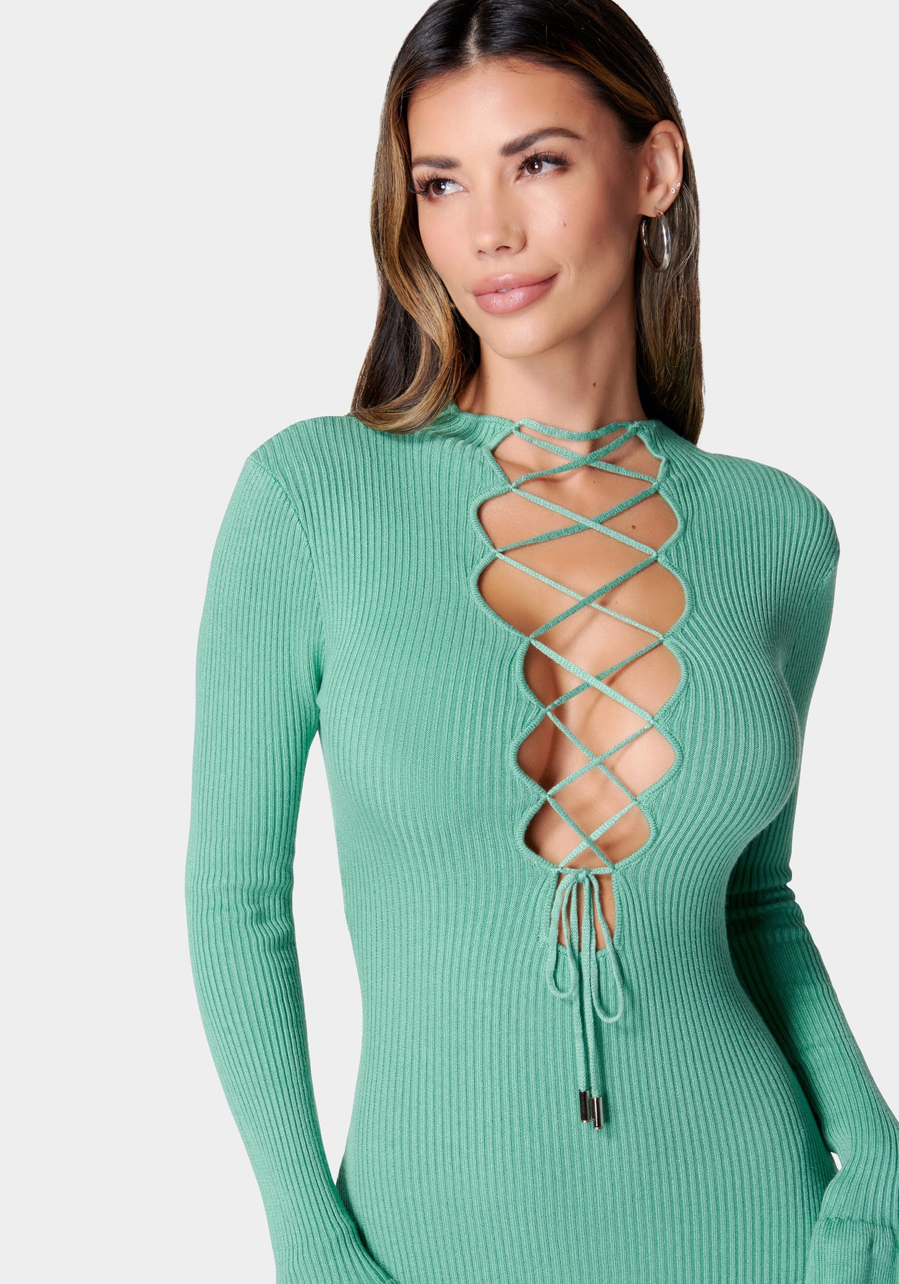 Get ready to show off your curves in our Lace-up Front Rib Knit Mini Dress. The lace-up front detail adds a touch of sexiness, while the rib knit fabric hugs your figure. Perfect for a night out or a casual date, this dress will make you feel confident and stylish.