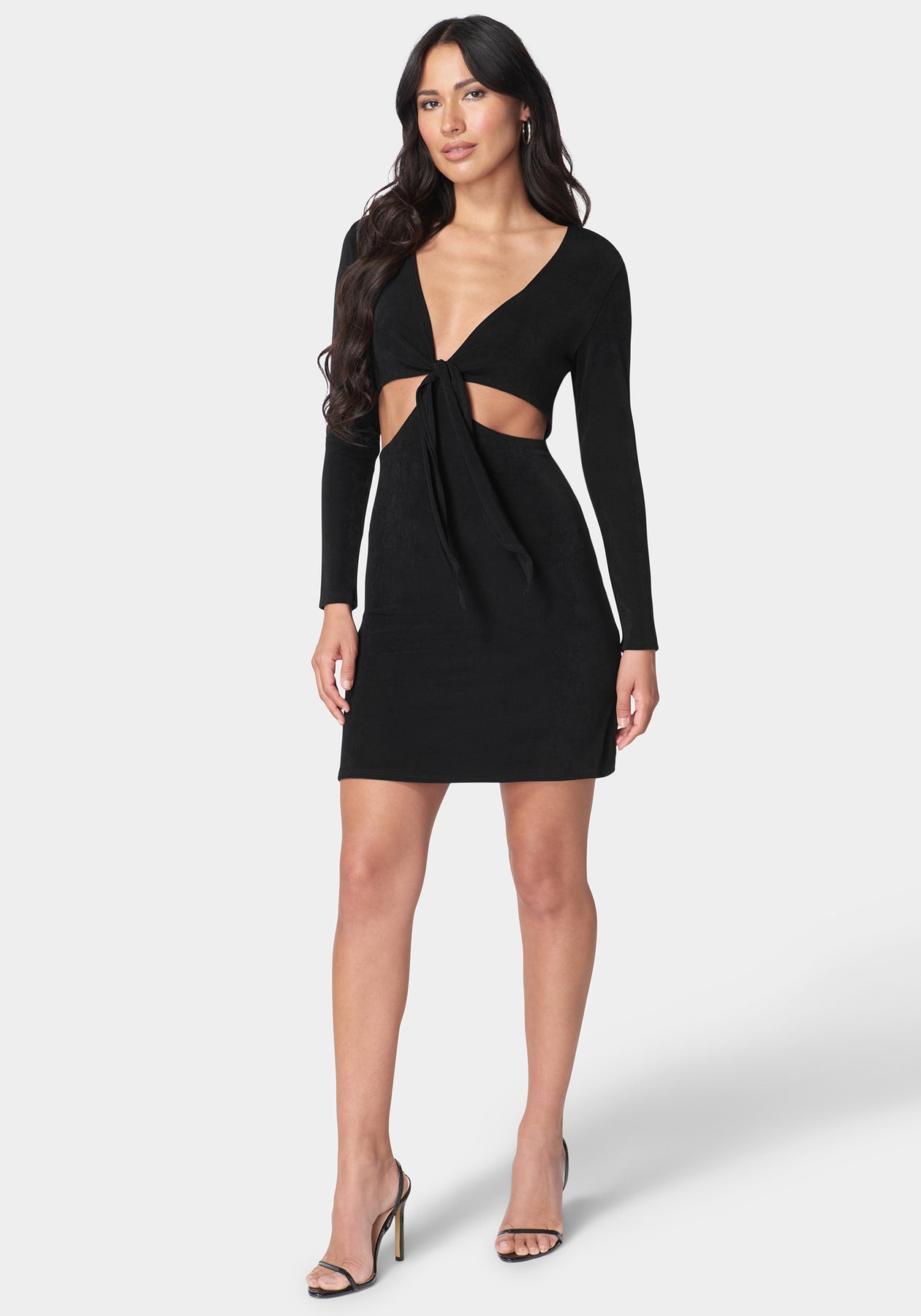 Long Sleeve Tie Front Slinky Dress