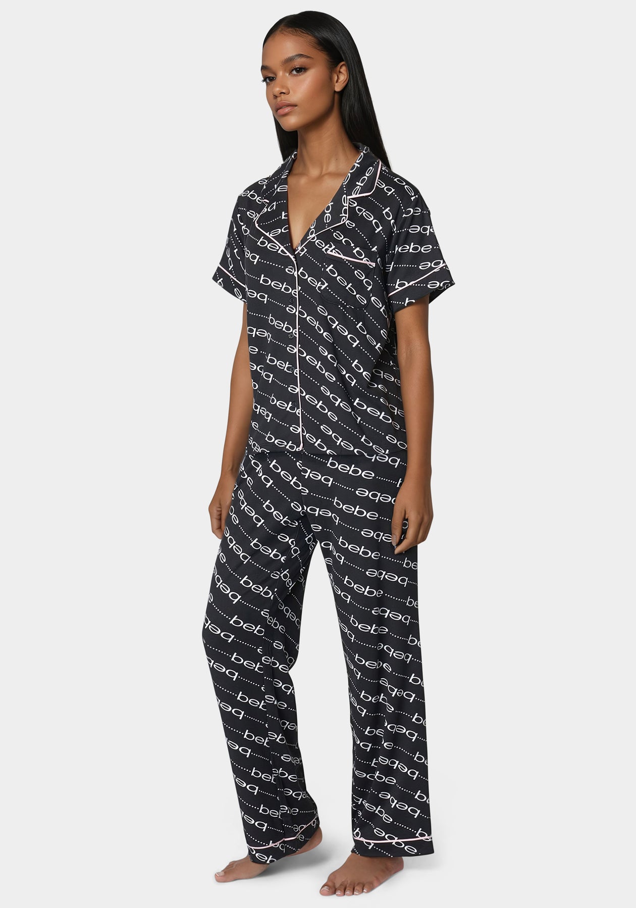 Relax in style with this comfortable set featuring an all-over bebe logo print. Perfect for sleep or lounging.