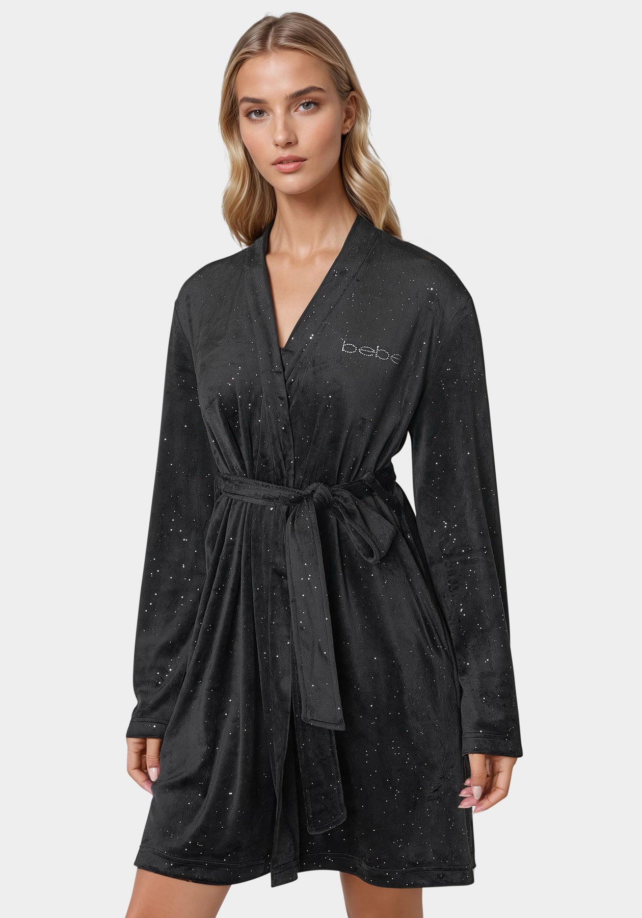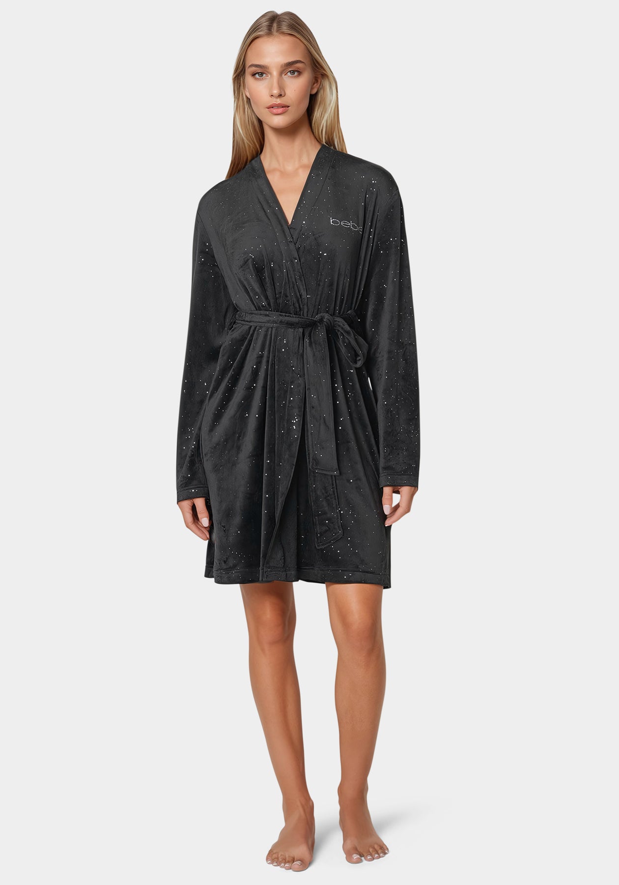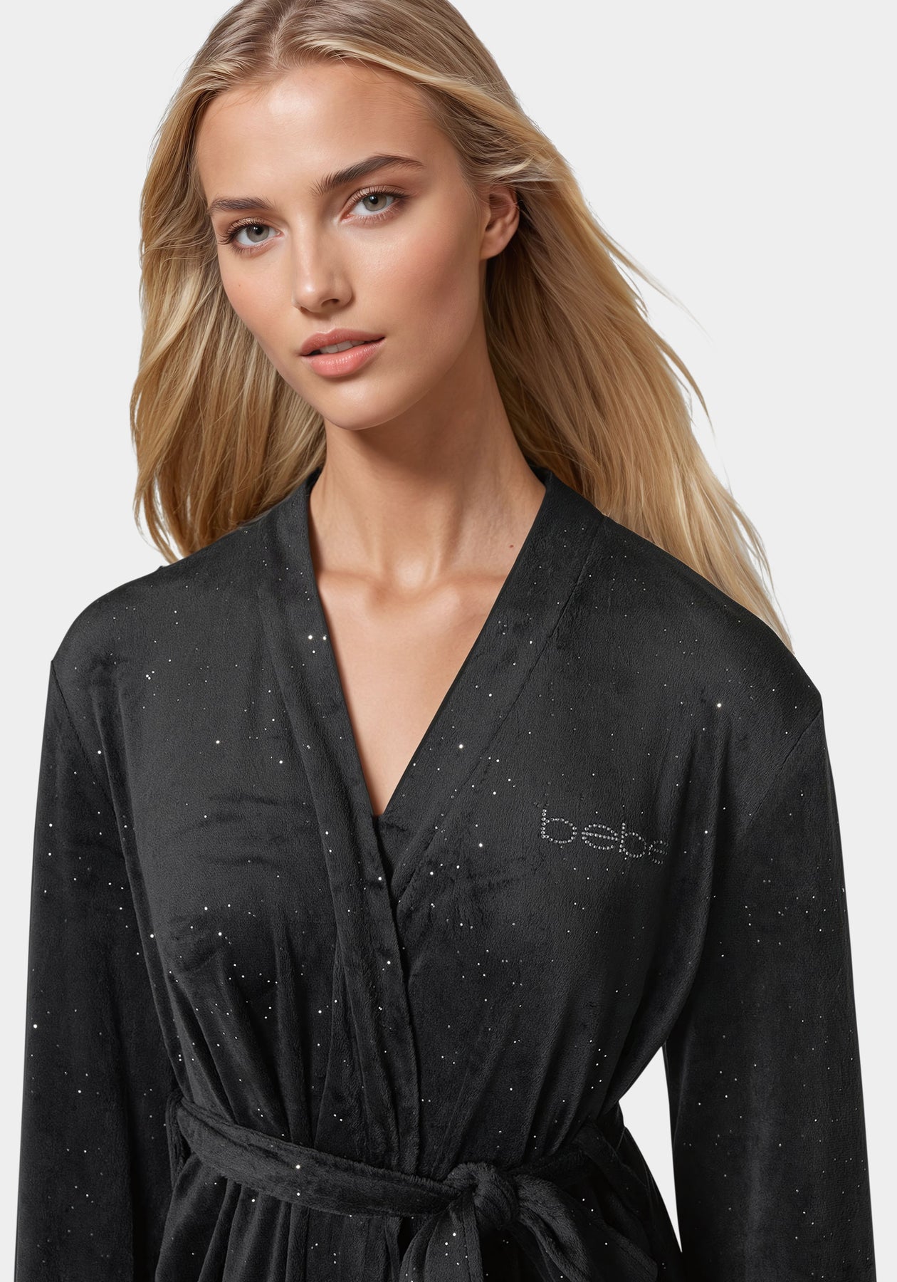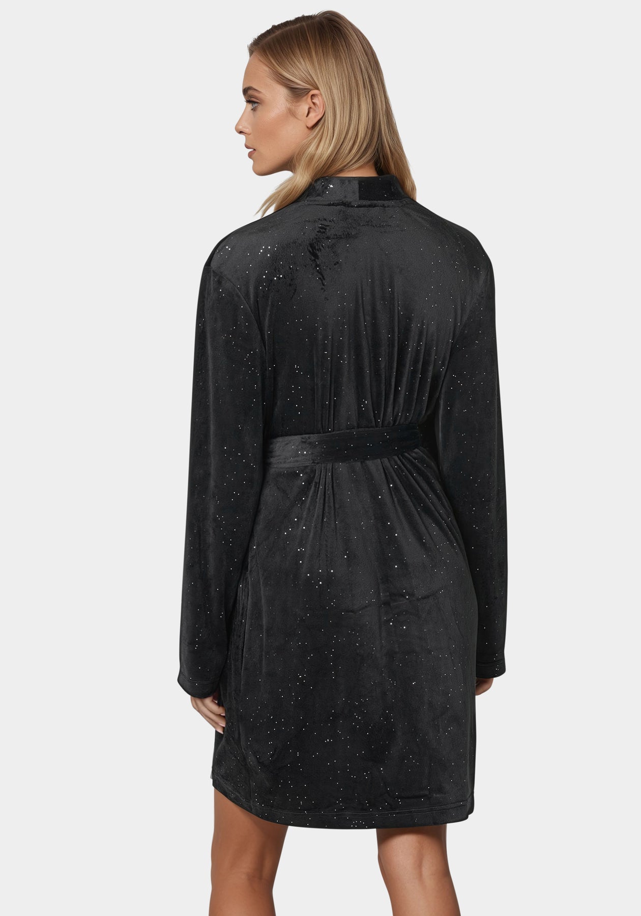 A comfortable design and shimmering detail make this robe perfect for lounging. A mirror-like finish adds a touch of glamour to your relaxation routine.