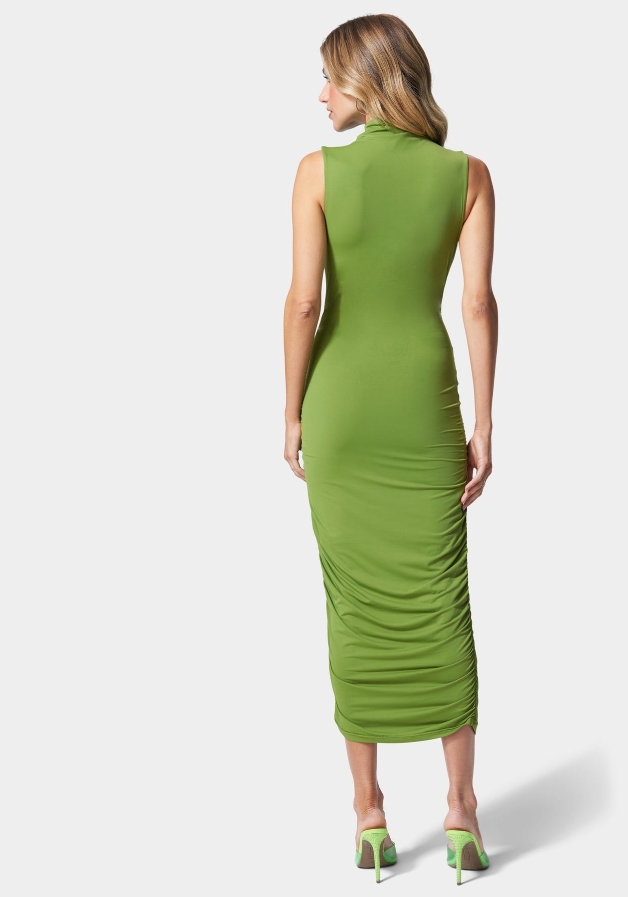 Mock Neck Shirred Midi Dress