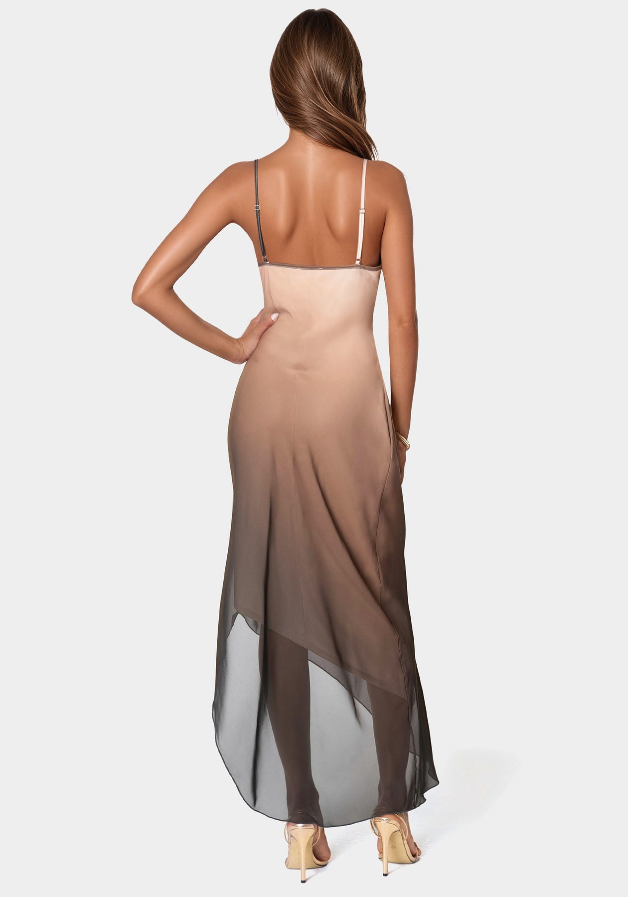 Dreamy fabric meets a cascade of color. This versatile piece features an elegant cowl neckline, paired with the subtle romance of an ombre chiffon.