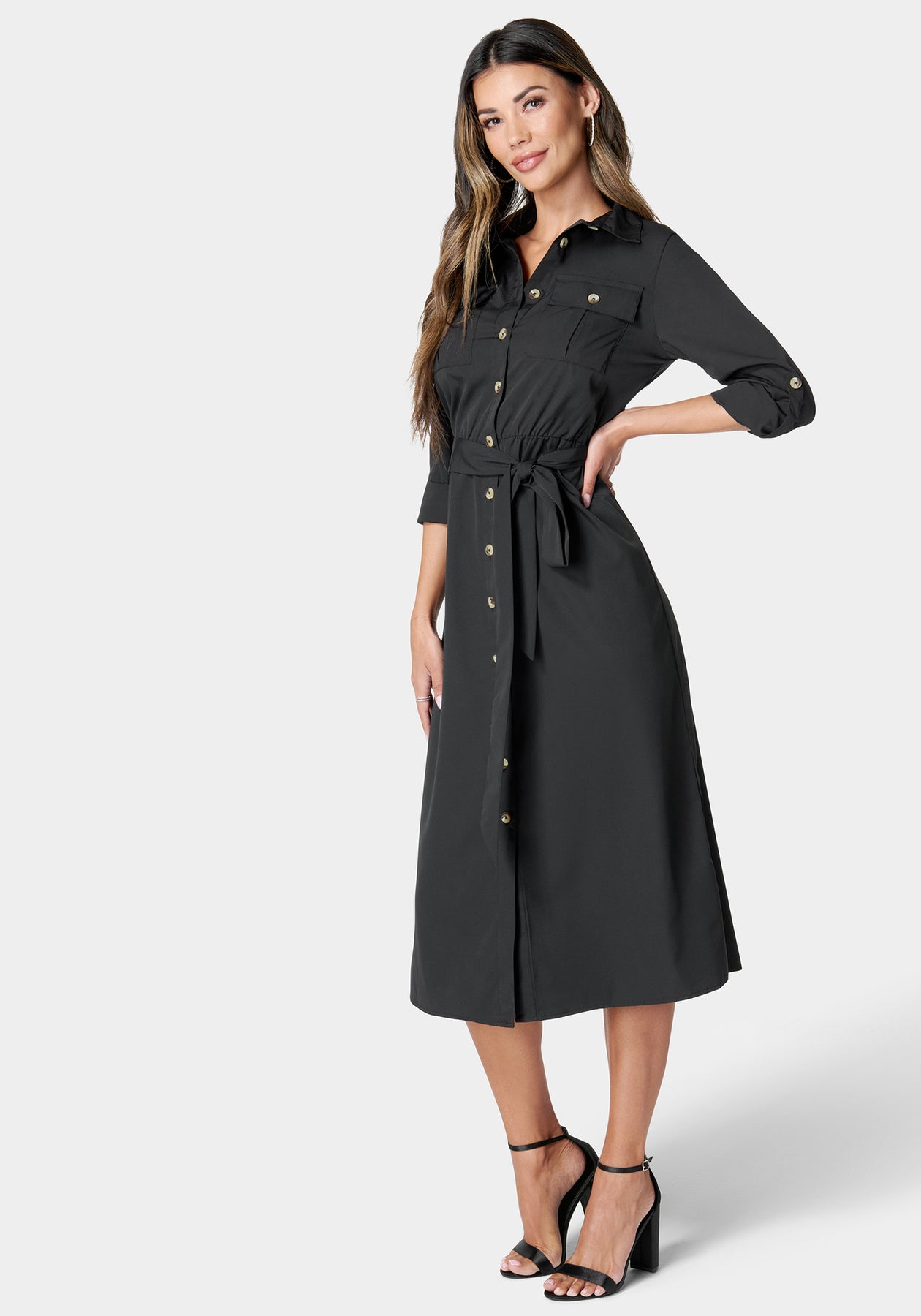 This versatile Poly Crepe Button Dress, featuring a button-down design and lightweight fabric, is a comfortable and stylish choice for a casual day out or a special occasion.