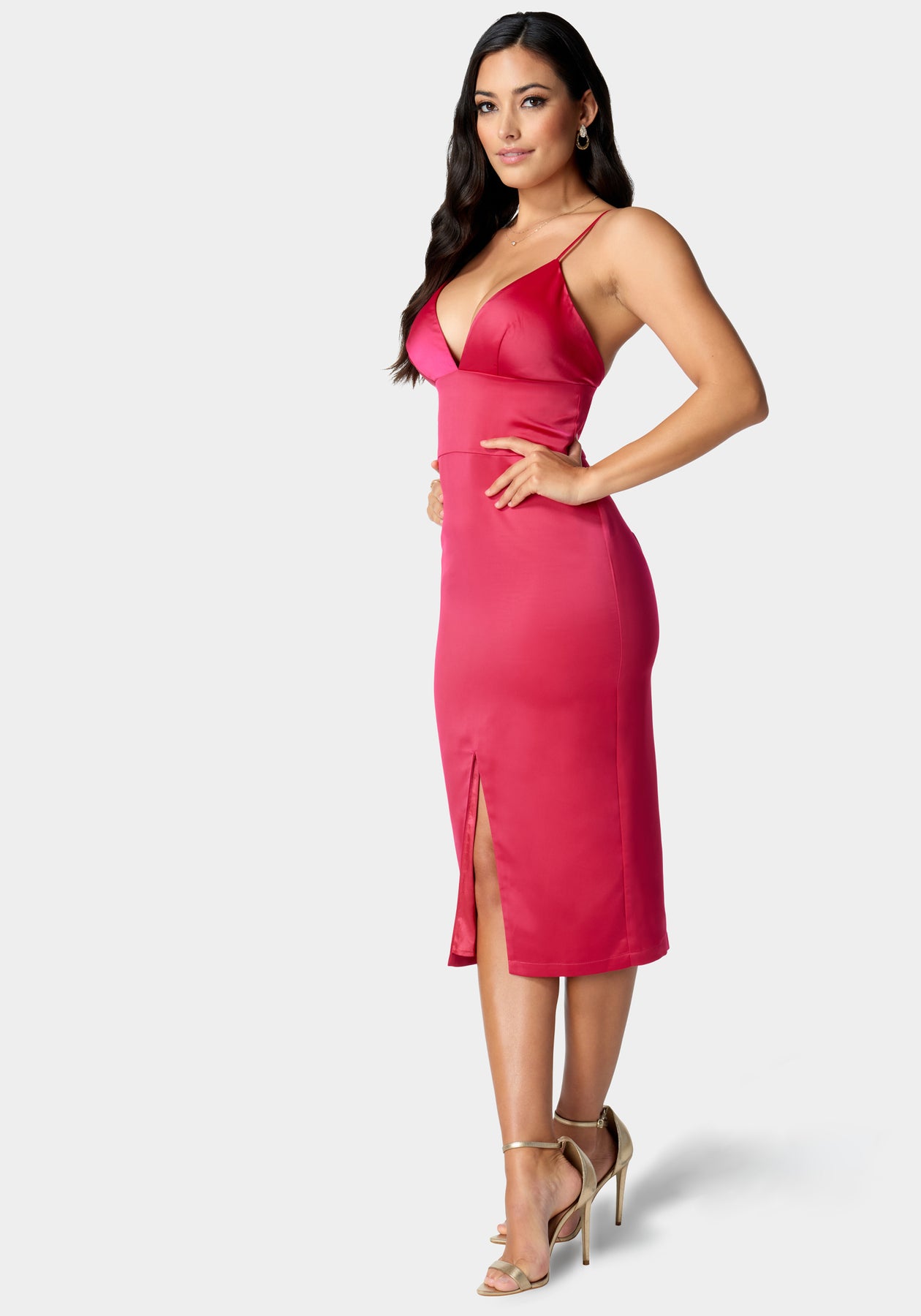 Satin Hi Slit Midi Dress
