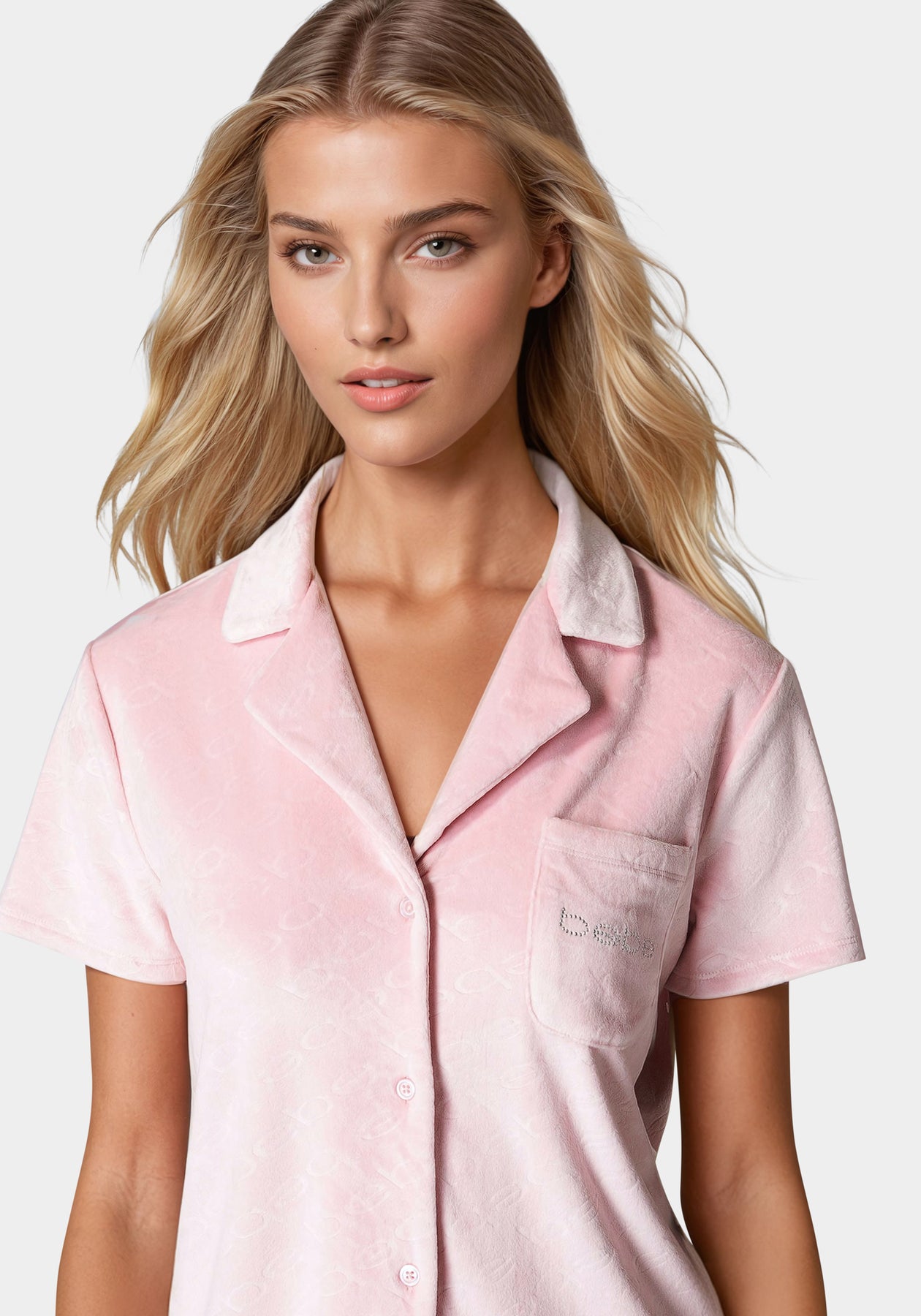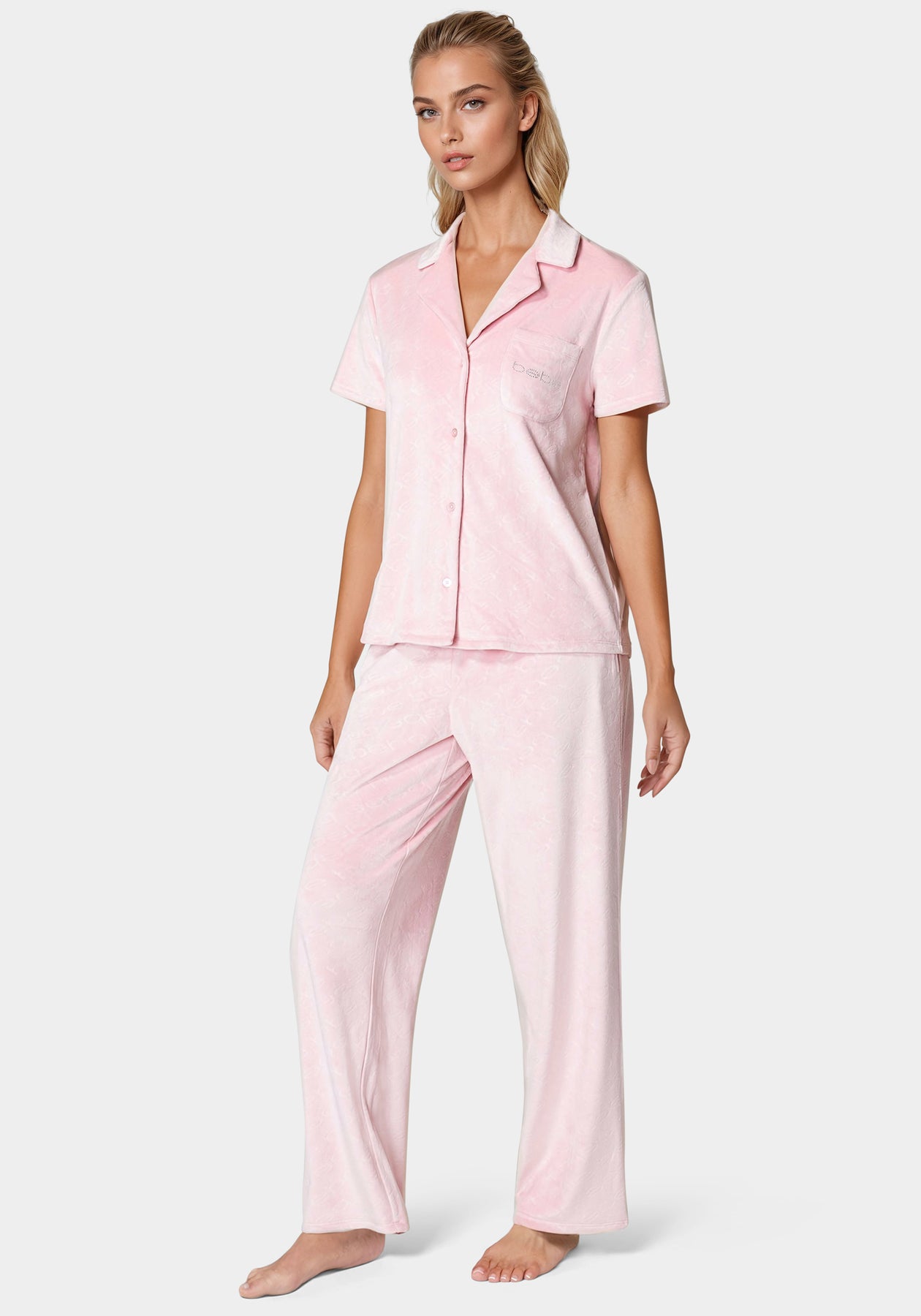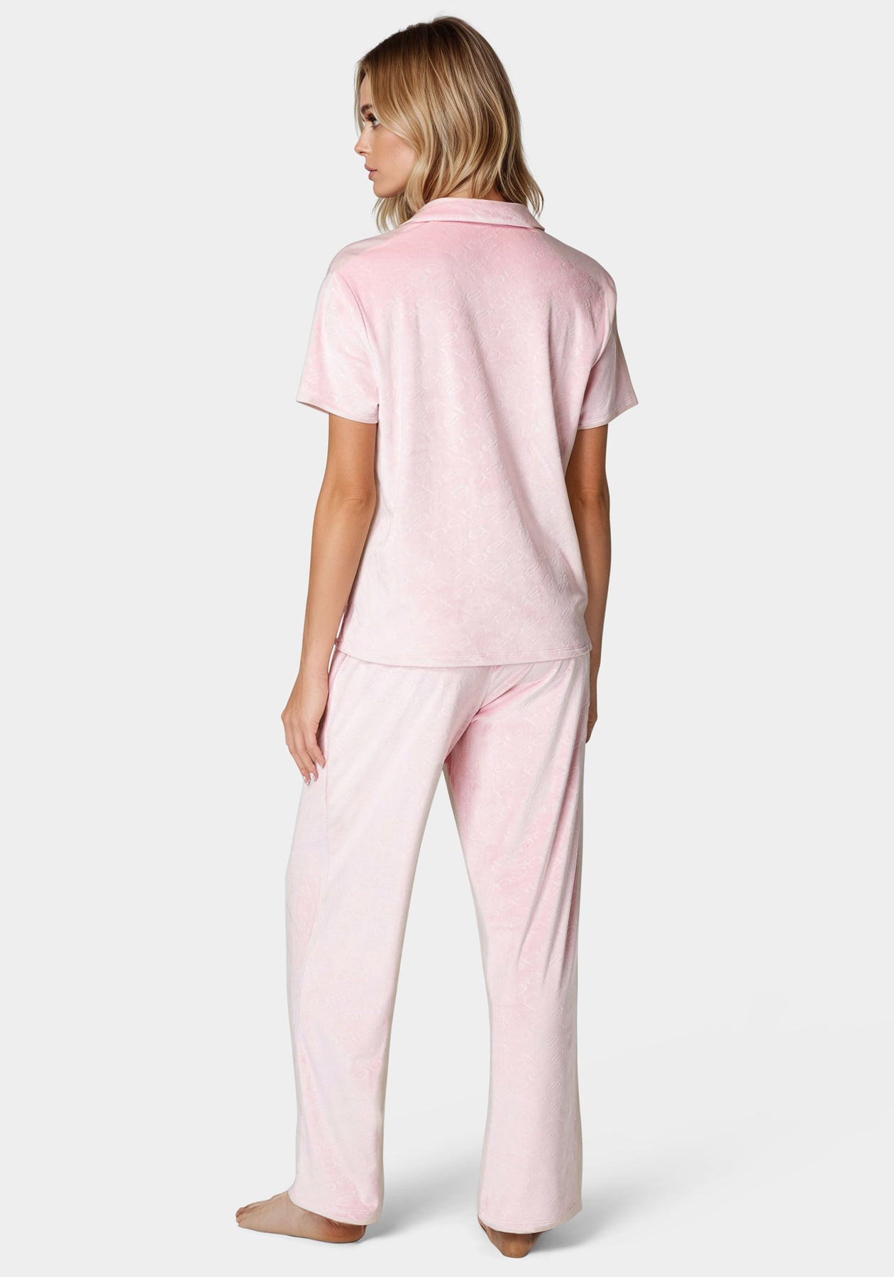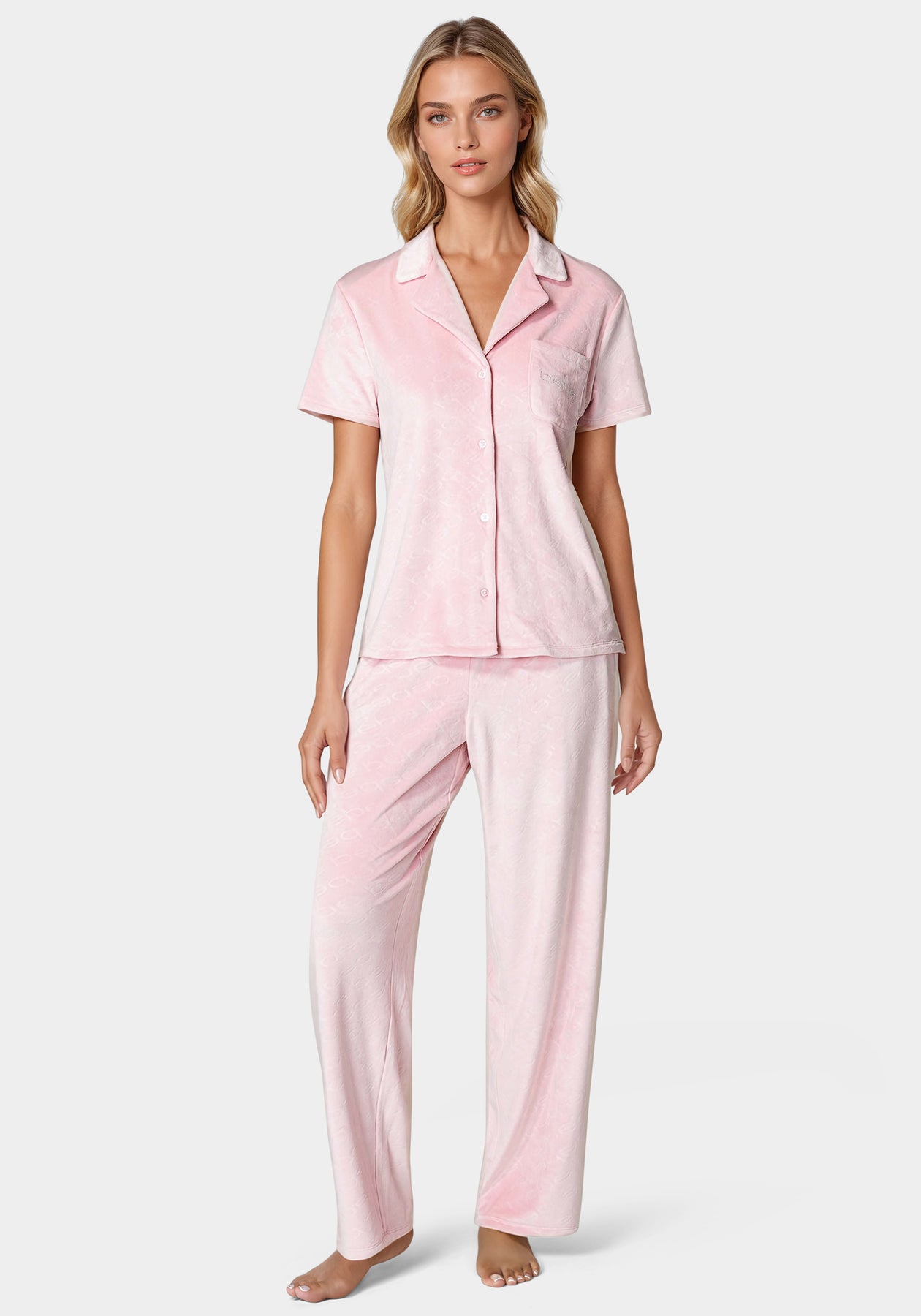 Enjoy the ultimate blend of style and comfort with this short-sleeve pant set. Perfect for both lounging and sleeping, it's your go-to for effortless relaxation.