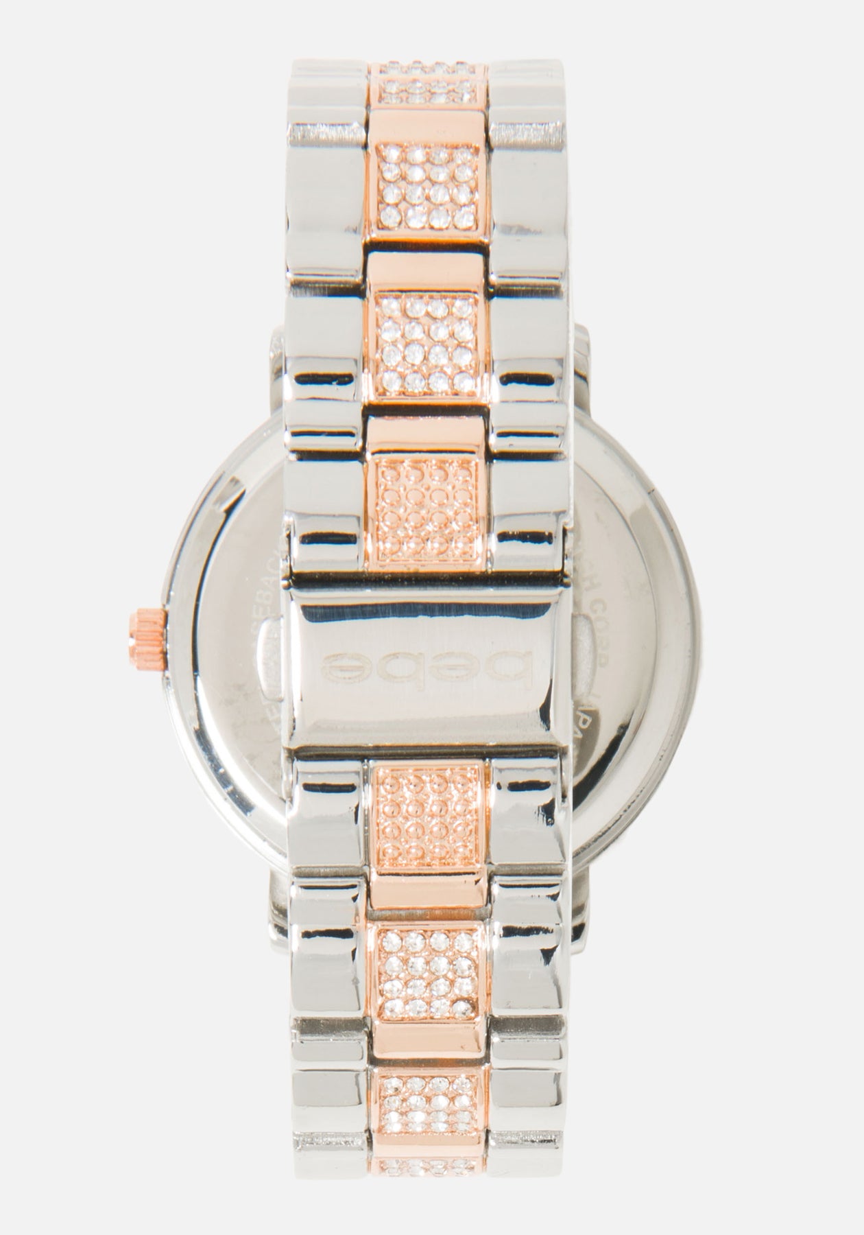 Fashion, function, and value, two-tone (gold & silver) crystal bracelet watch.