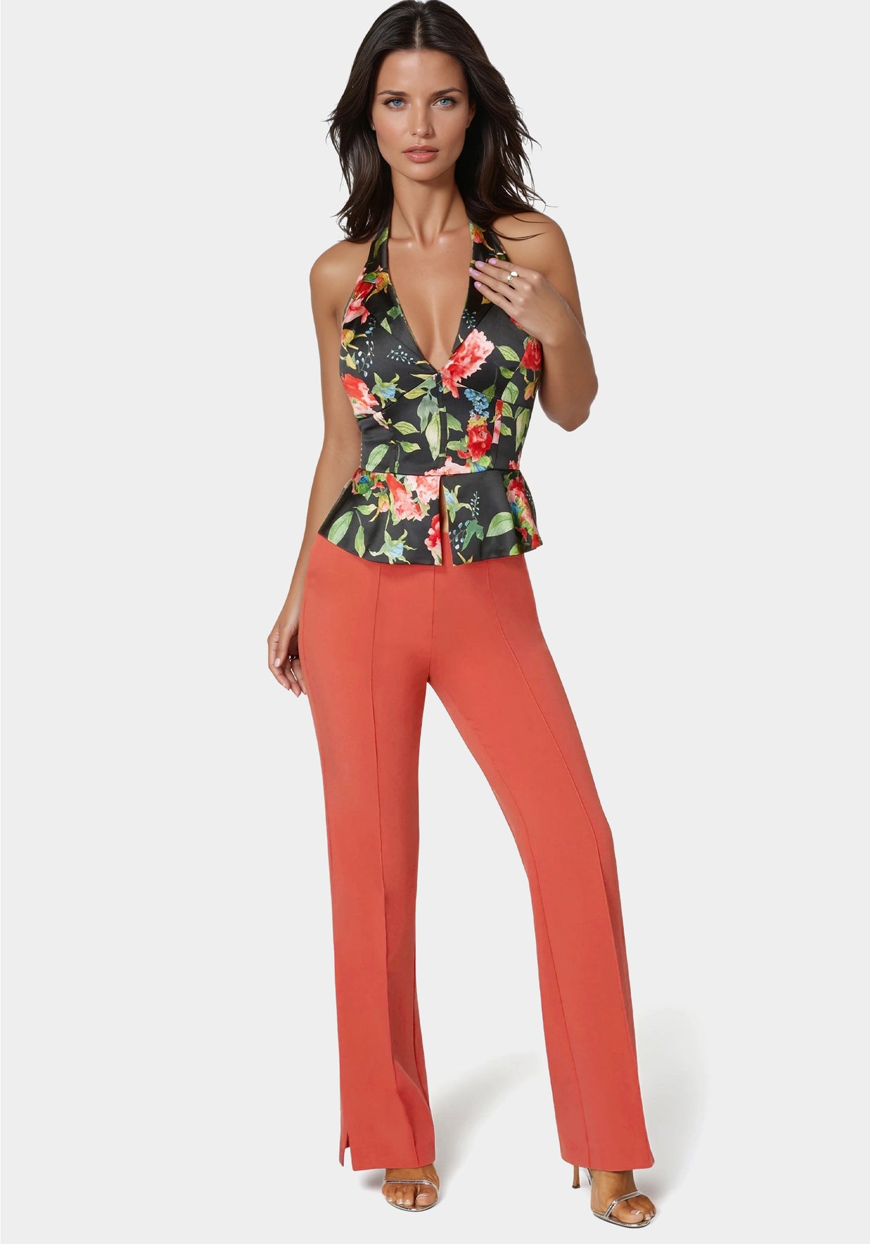 A staple for wardrobe versatility, these straight-leg pants with a high waist offer a sleek silhouette, enhanced by the discreet side pocket and invisible zipper. Ideal for both office and casual chic environments, they provide a comfortable, tailored fit.