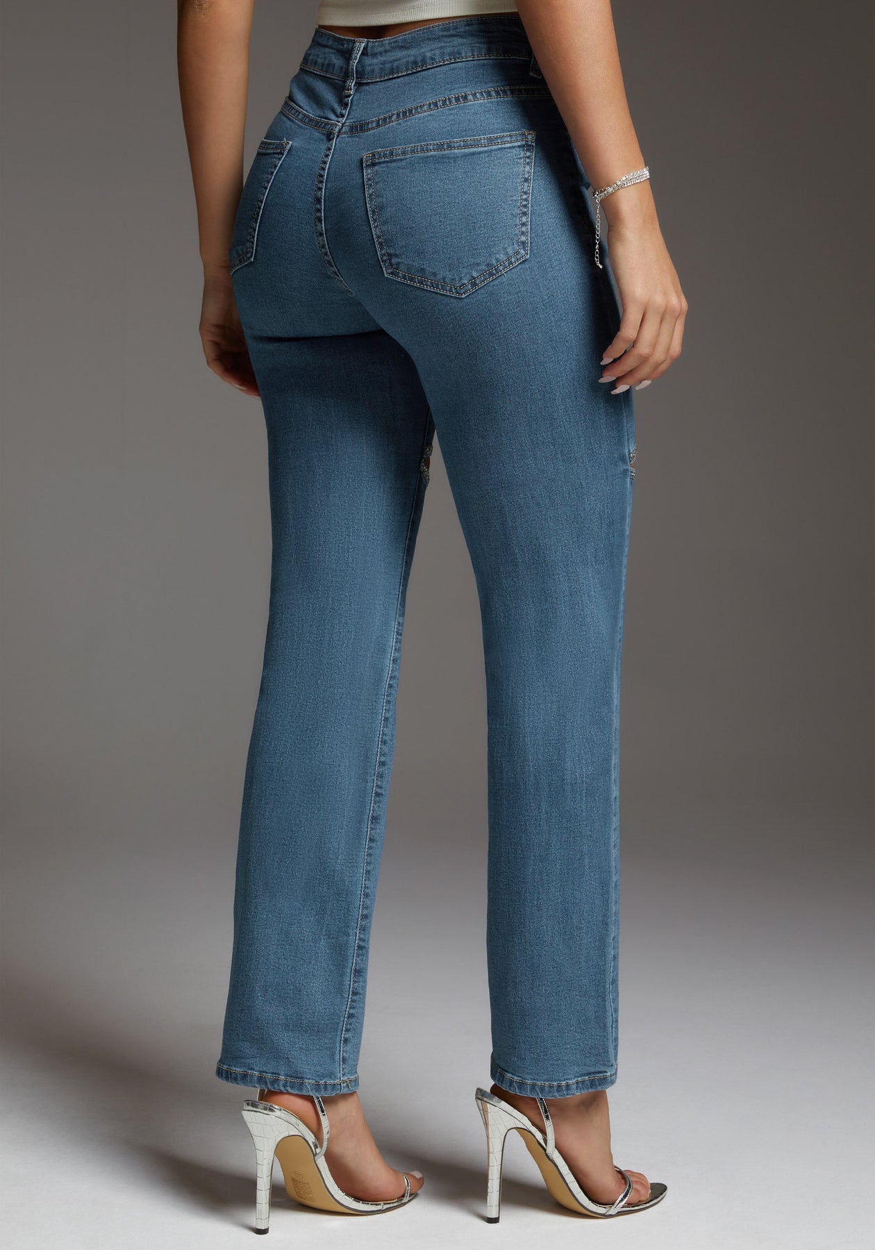 Cut through the mundane with the Bebe Bling Slit Jean. Crafted for evening soirees or glamorous shopping trips, these jeans merge comfort with a dash of extravagance.
