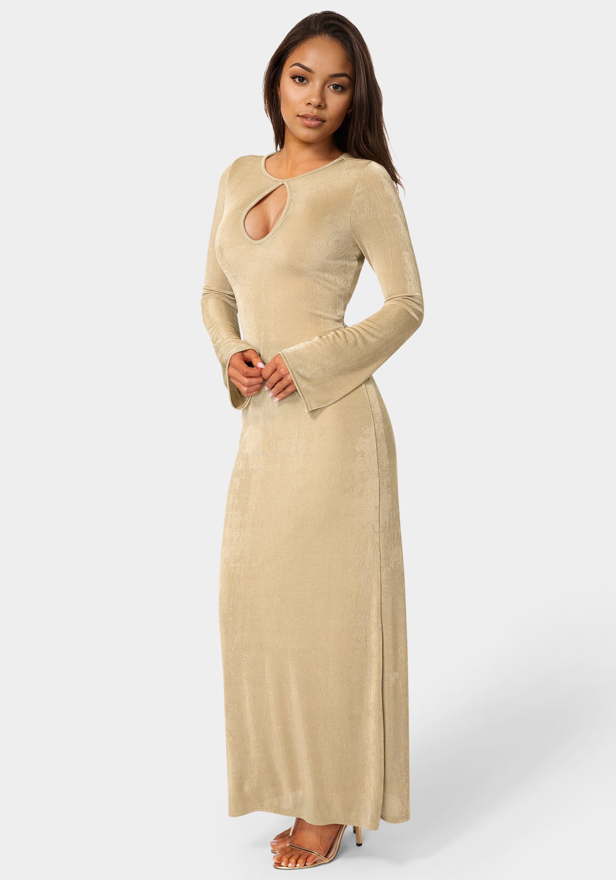 Long Sleeve Open Neck Slinky Maxi Dress