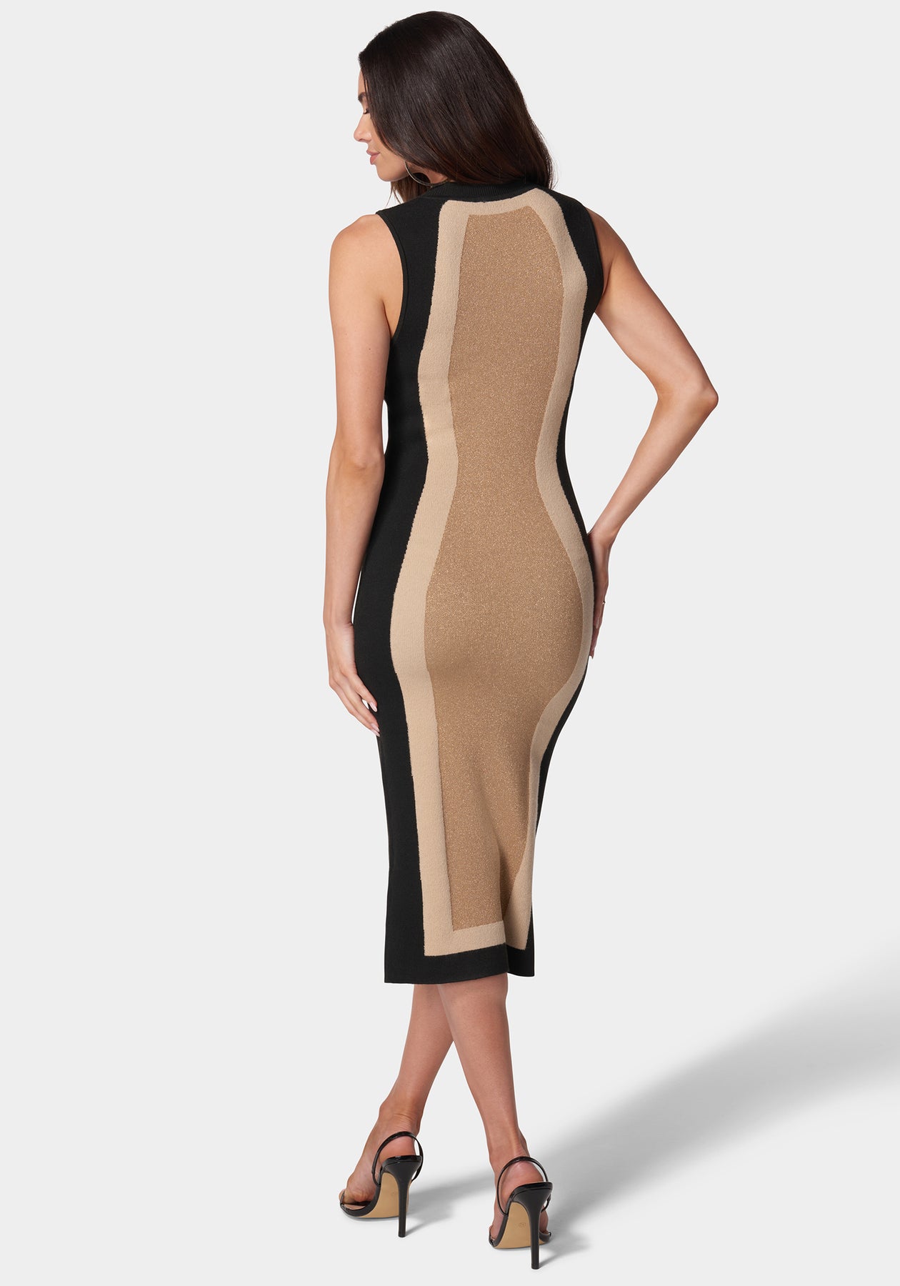 Metallic Colorblock Sweater Midi Dress