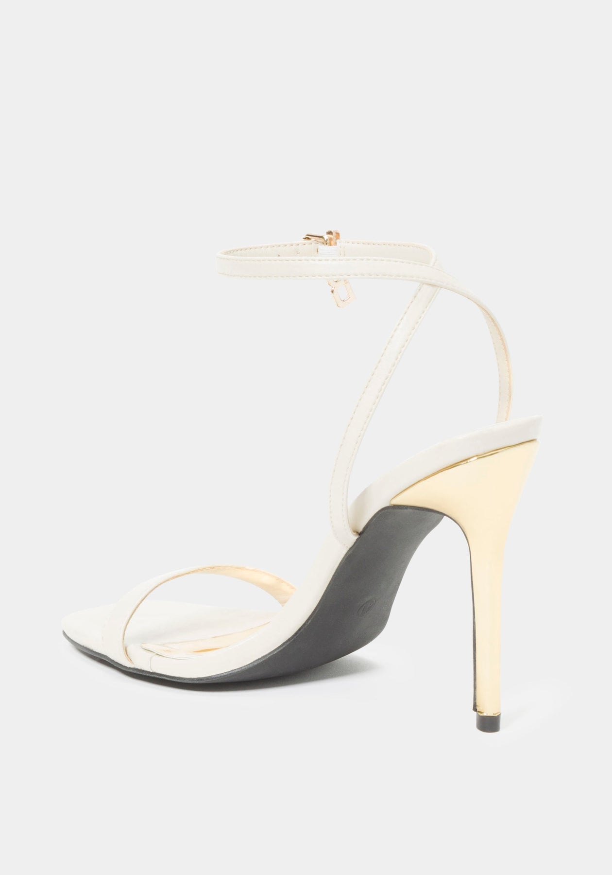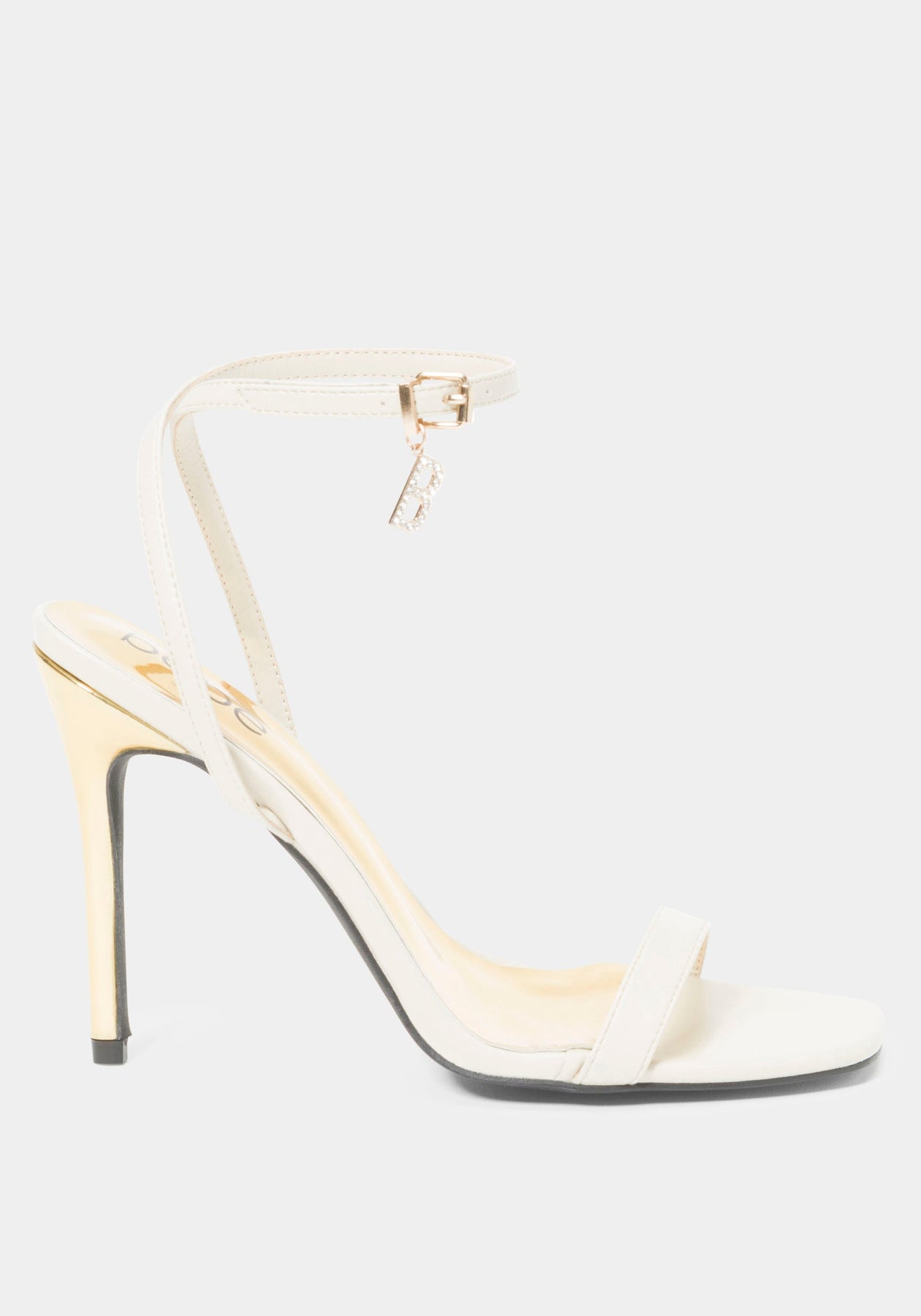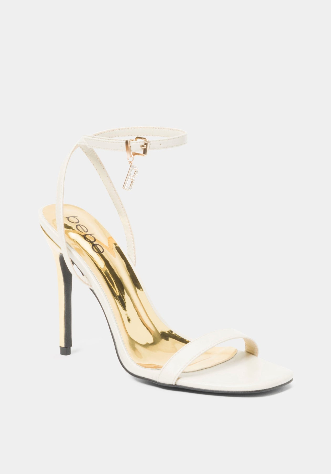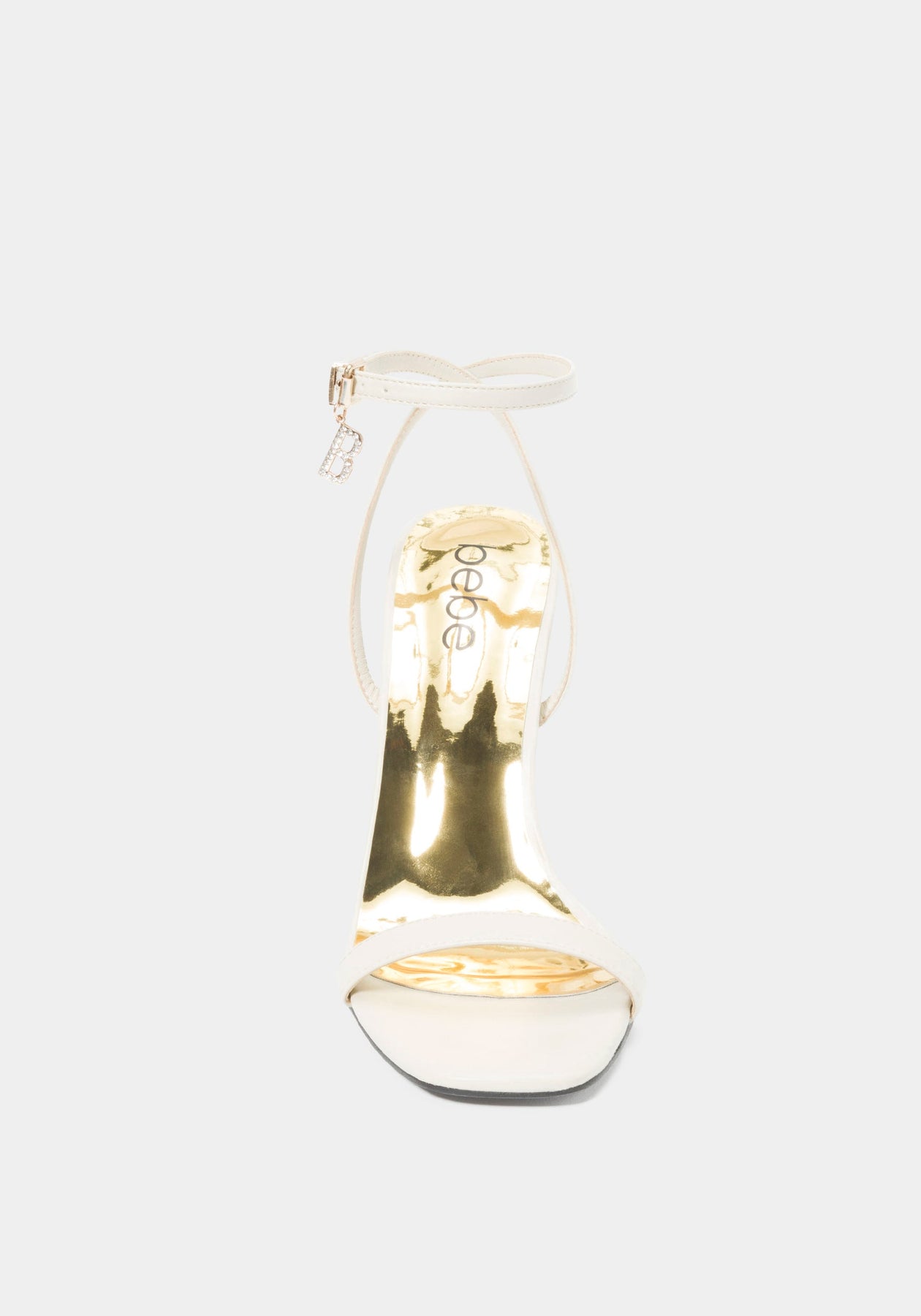 Channel the allure of Ciara with the Mimi Heel from the bebe x Ciara line. These metallic stiletto sandals, adorned with alluring ankle straps and a crystal B charm, are the epitome of timeless elegance. Perfect for those seeking to captivate and charm, these heels bring a piece of the singer's stunning elegance to your ensemble.