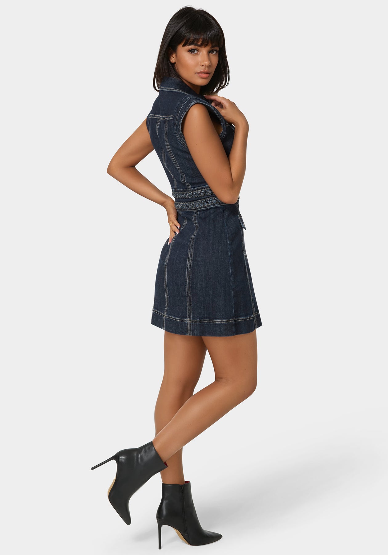 Button up and stand out in this denim masterpiece that brings a new definition to detailed design. Featuring a braided waist that cinches your look with a touch of intrigue and a front that says you’re here to make moves. It’s denim, but dialed up.