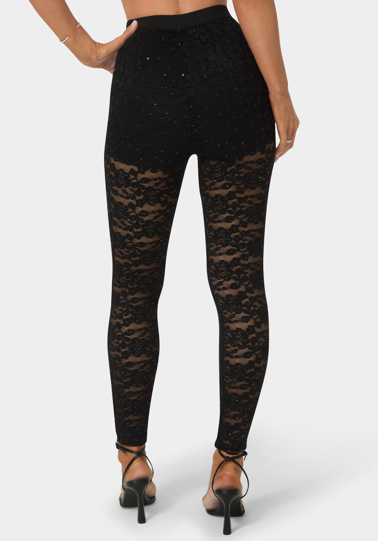 Step up your glam game with these embellished stretch lace leggings. Made for hitting the dance floor or showcasing sultry sophistication at any evening affair.