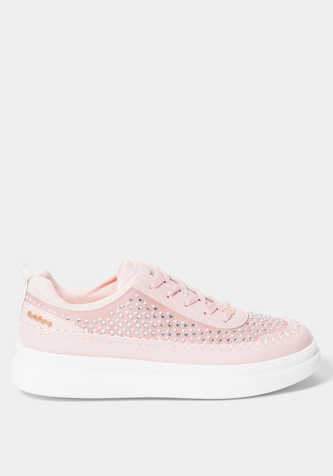 Experience the epitome of luxury with these ultra-trendy sneakers. Pearls and rhinestones instantly elevate your casual wear.