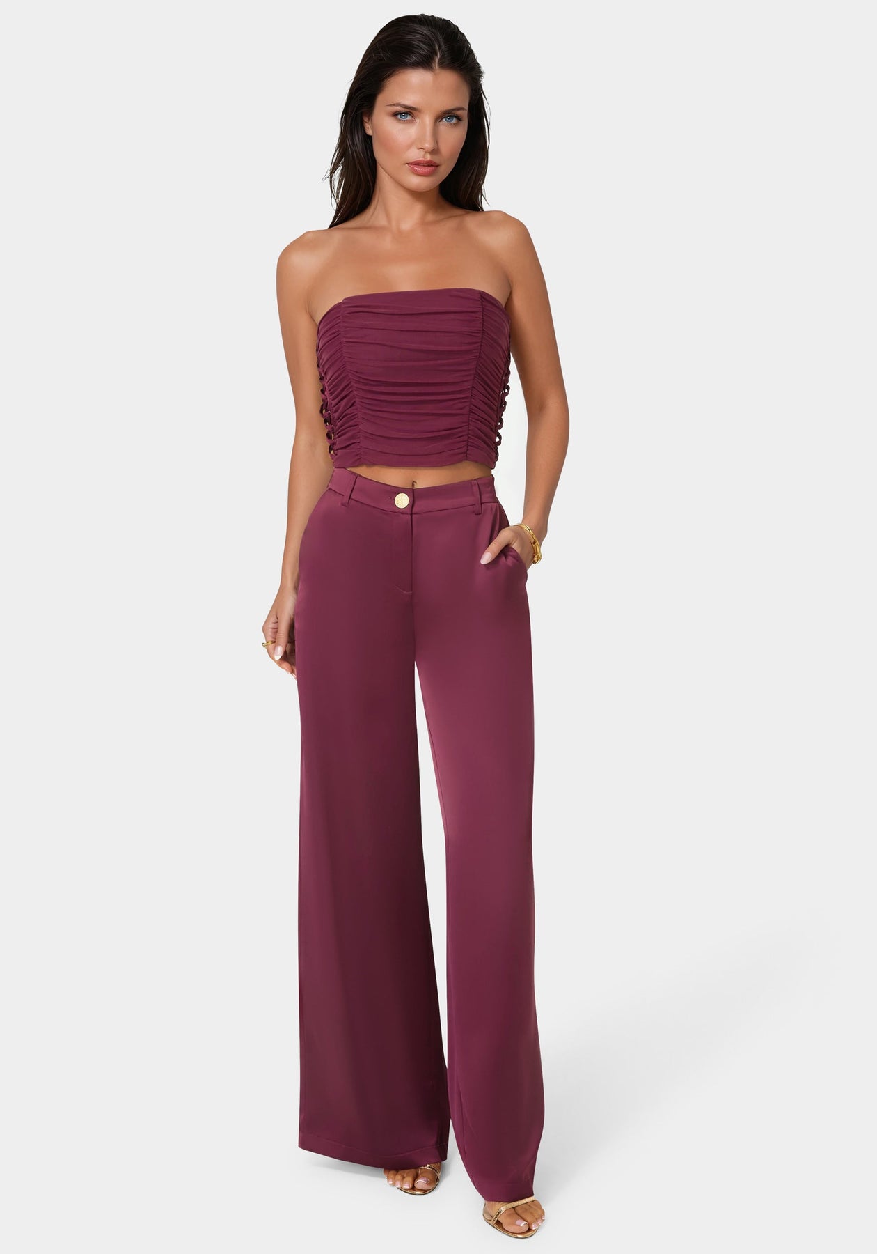 Elongate your essence with the High Waist Ultra Wide Leg Satin Pant, where comfort meets otherworldly chic. The high waist cinches to celebrate your form, while the wide legs float around you, offering glimpses of your ambition with every stride. Envelop yourself in the silky embrace of satin and let these pants trumpet your arrival with every swish and sway.