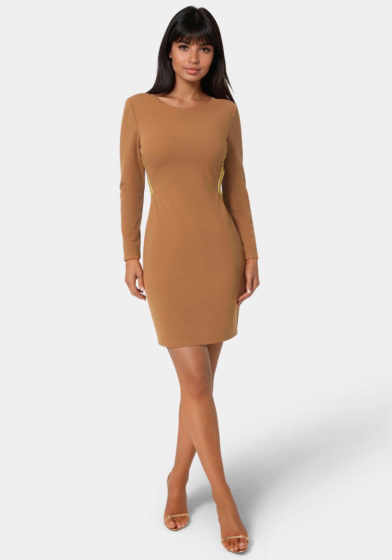 Long Sleeve Open Back Midi with Rhinestone Trim
