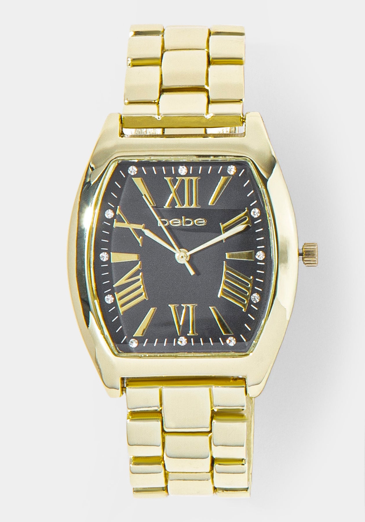 Front View-Watch & 'Apple' Handbag Charm Set-GOLD/BLK