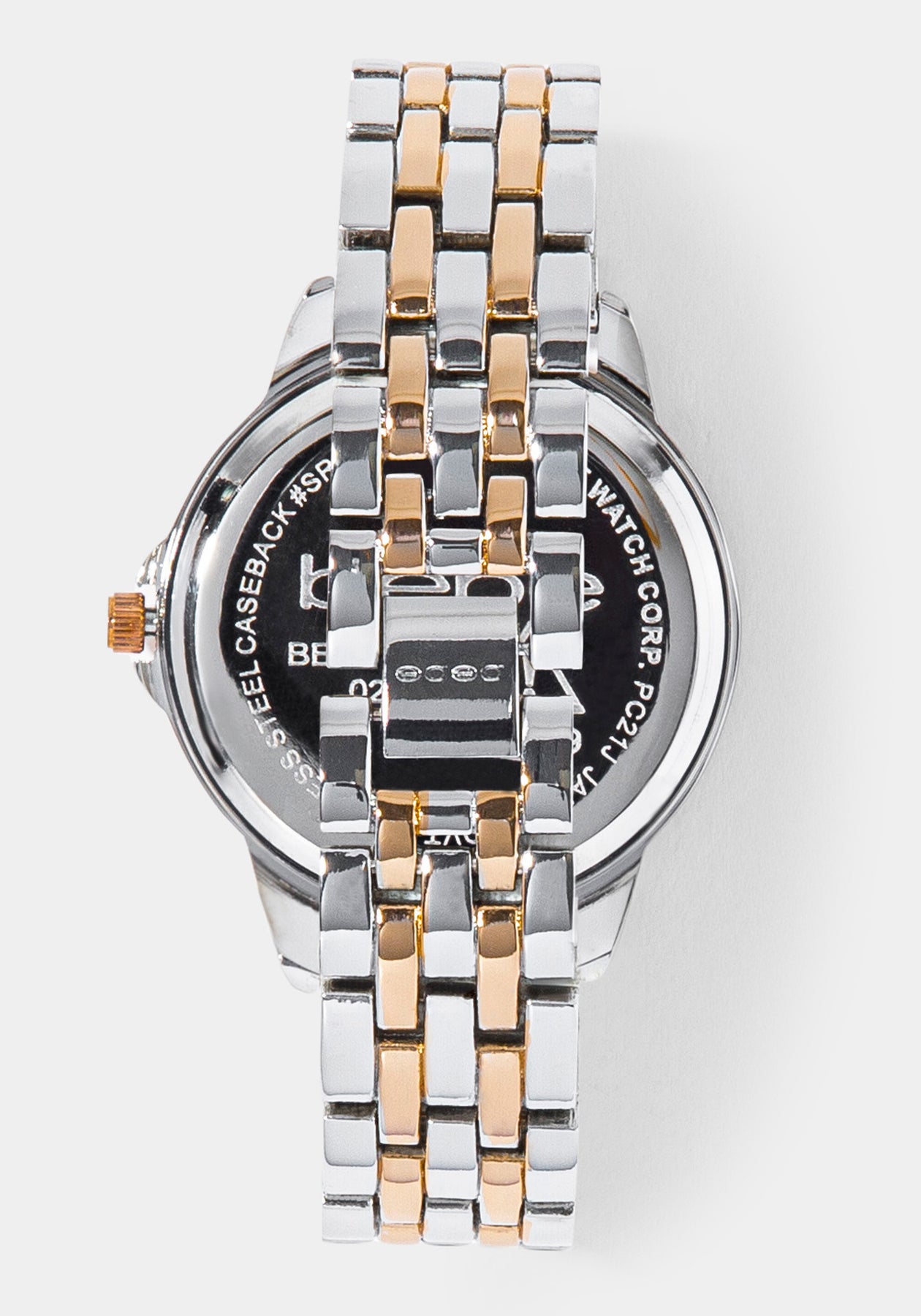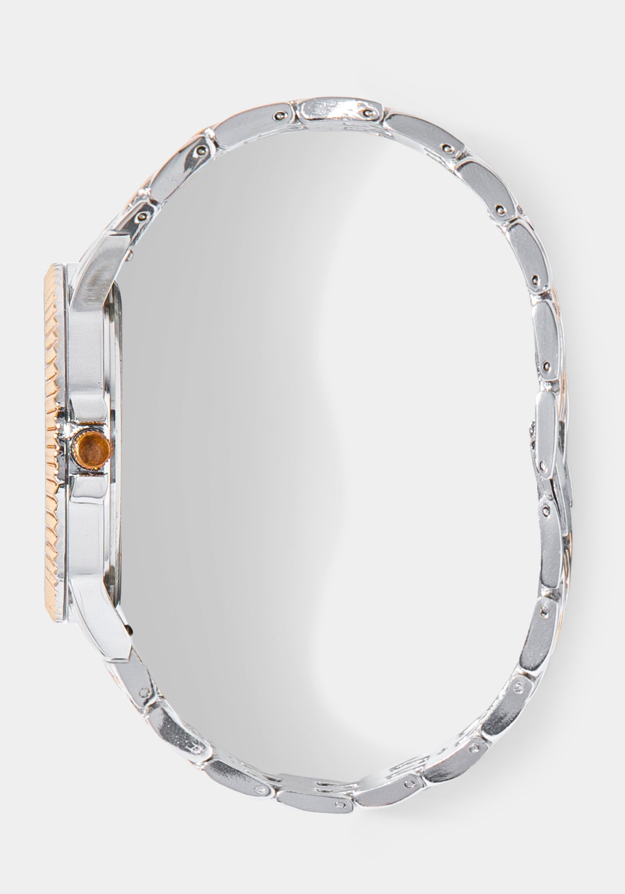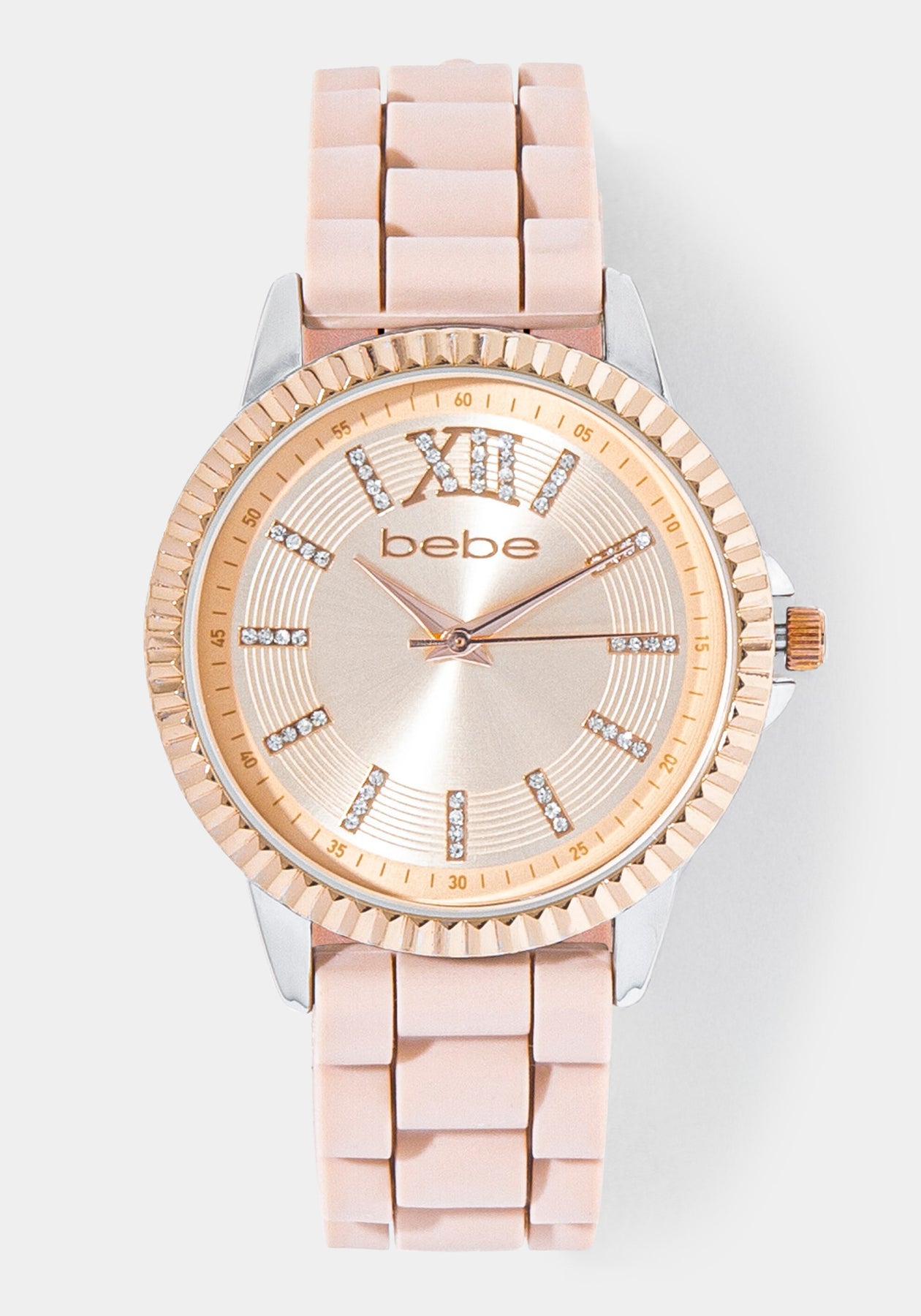 Master multiple looks with one fearless timepiece. This box set features a striking sunray dial, coin edge bezel, and link bracelet—plus interchangeable blush pink silicone and leopard print straps. Switch your style whenever the mood strikes.