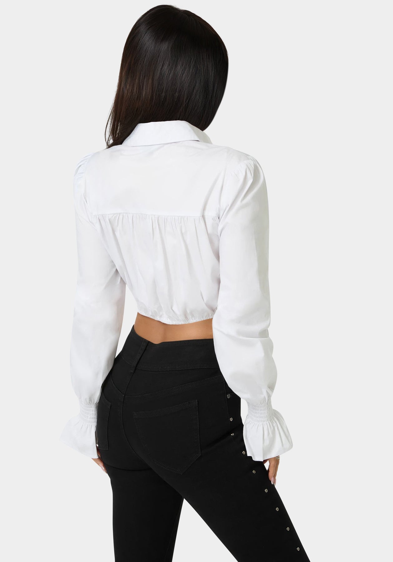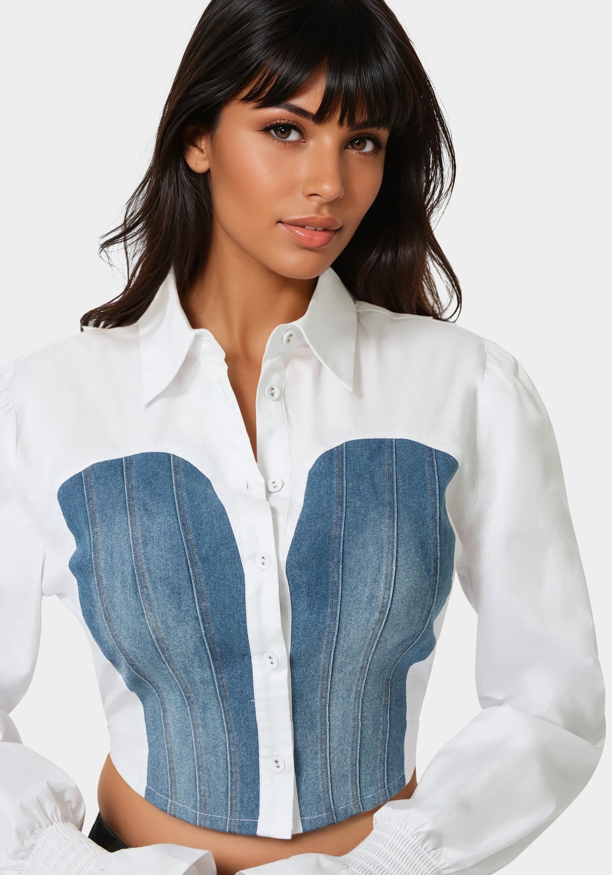 Stay effortlessly chic with this classic poplin denim top; suitable for day-to-night transitions.
