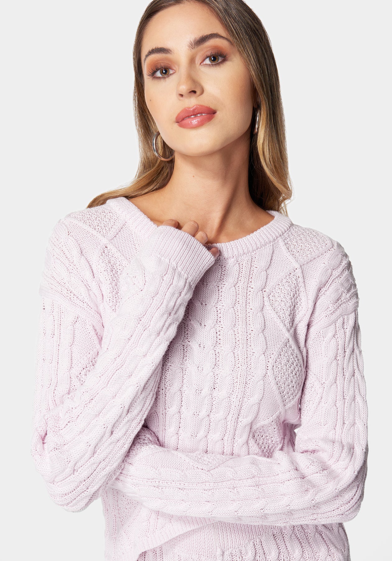 Embrace a unique and sultry style with our Asymmetric Cable Knit Sweater in Lavender Fog. The asymmetrical design adds an edgy touch to the classic cable knit, while the soft lavender hue brings a feminine allure.