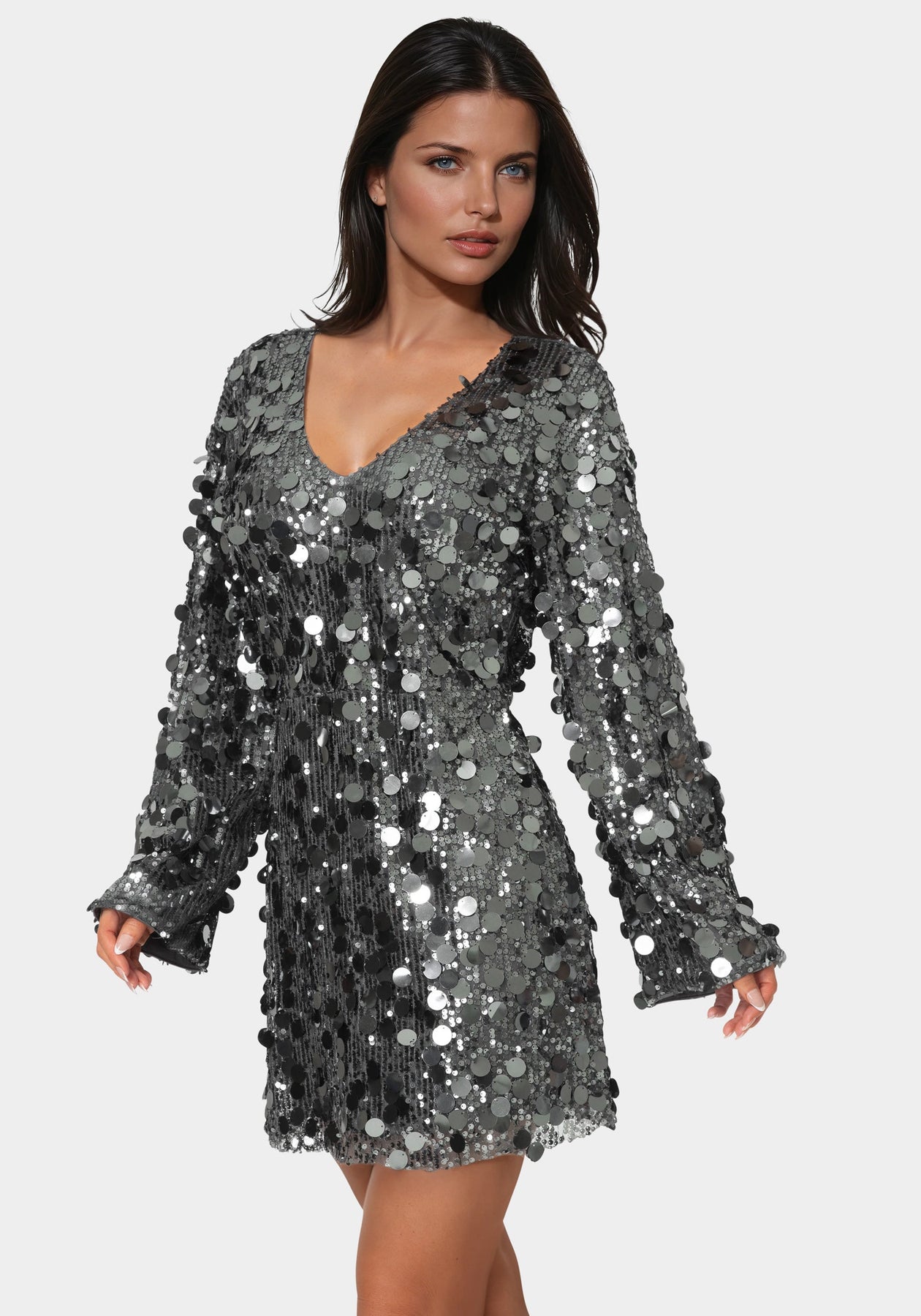 Other View-Beaded Dolman Sleeve Mini Dress-SILVER