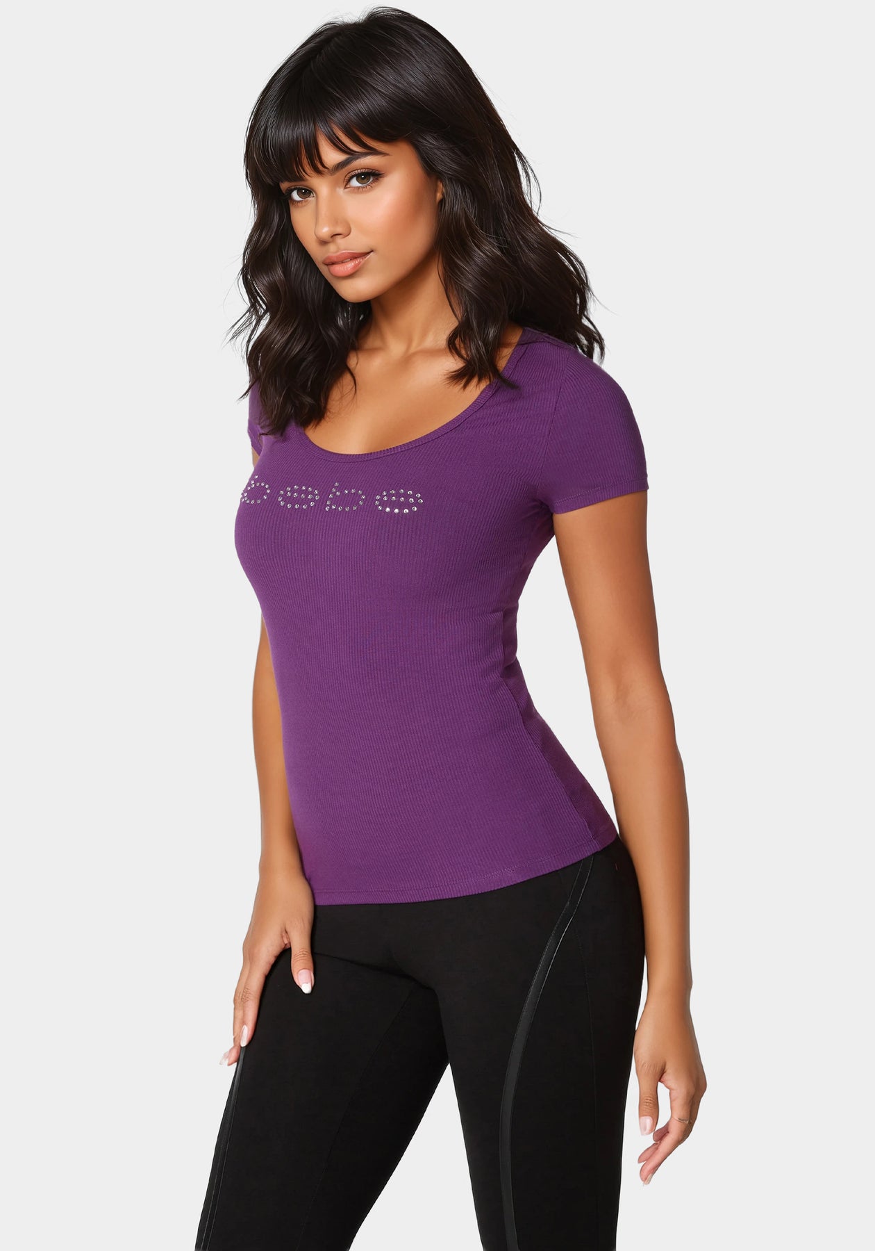 Bebe Logo Short Sleeve Scoop Neck Single Stone Rib Top