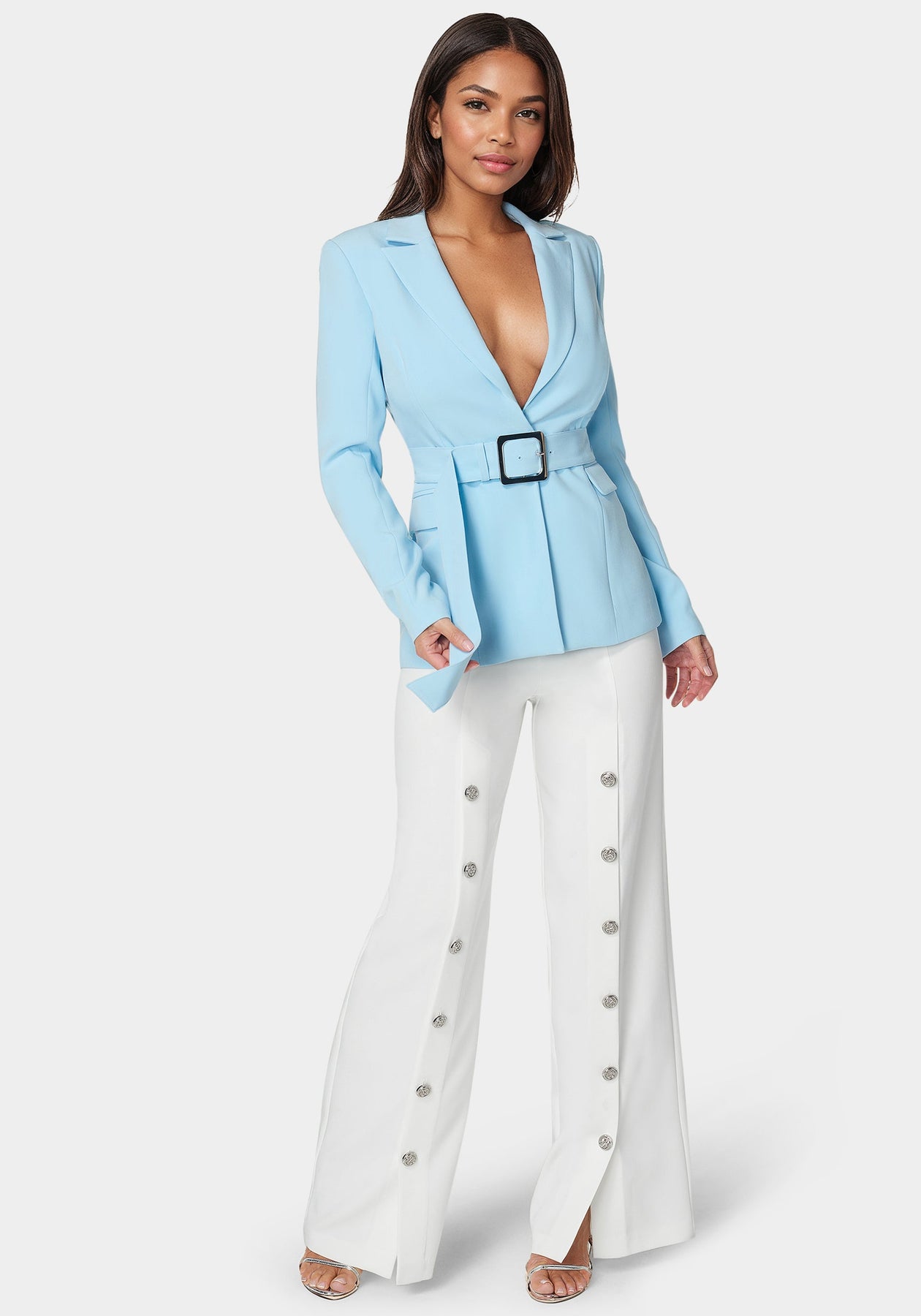 Sharpen your ensemble with this sleek, belted blazer. Its tailored design accentuates and flatters any silhouette.