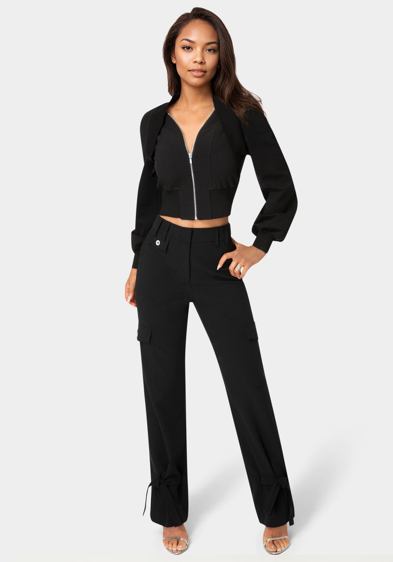 Bolero illusion slim jacket with a zip front and ribbed trims that hug. Toss over slip dresses or tanks for club nights, late dinners, and chilly patios pretending they’re warm.