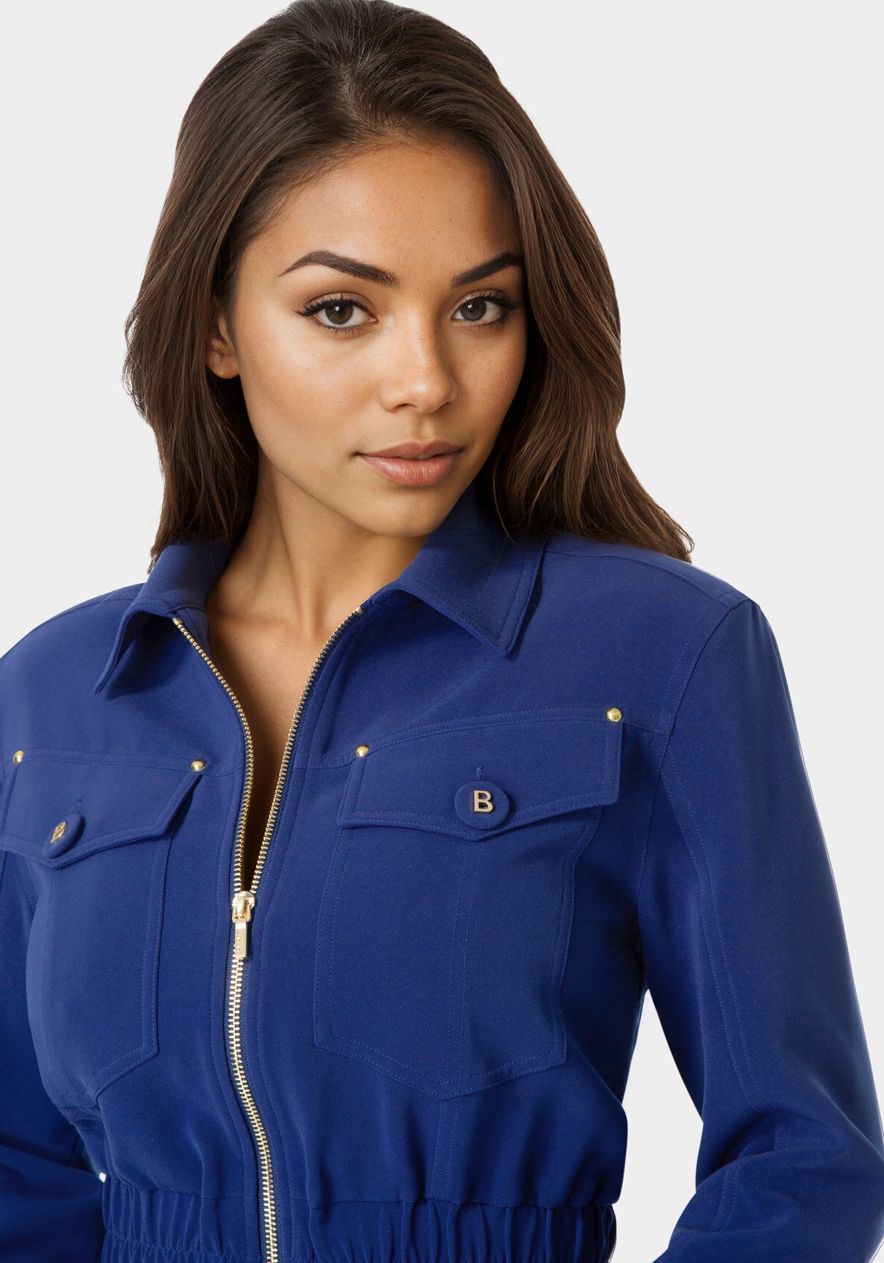 Cropped jacket with chest pockets and a sharp little attitude. Throw it over dresses, tanks, or bodysuits for coffee runs and city nights.