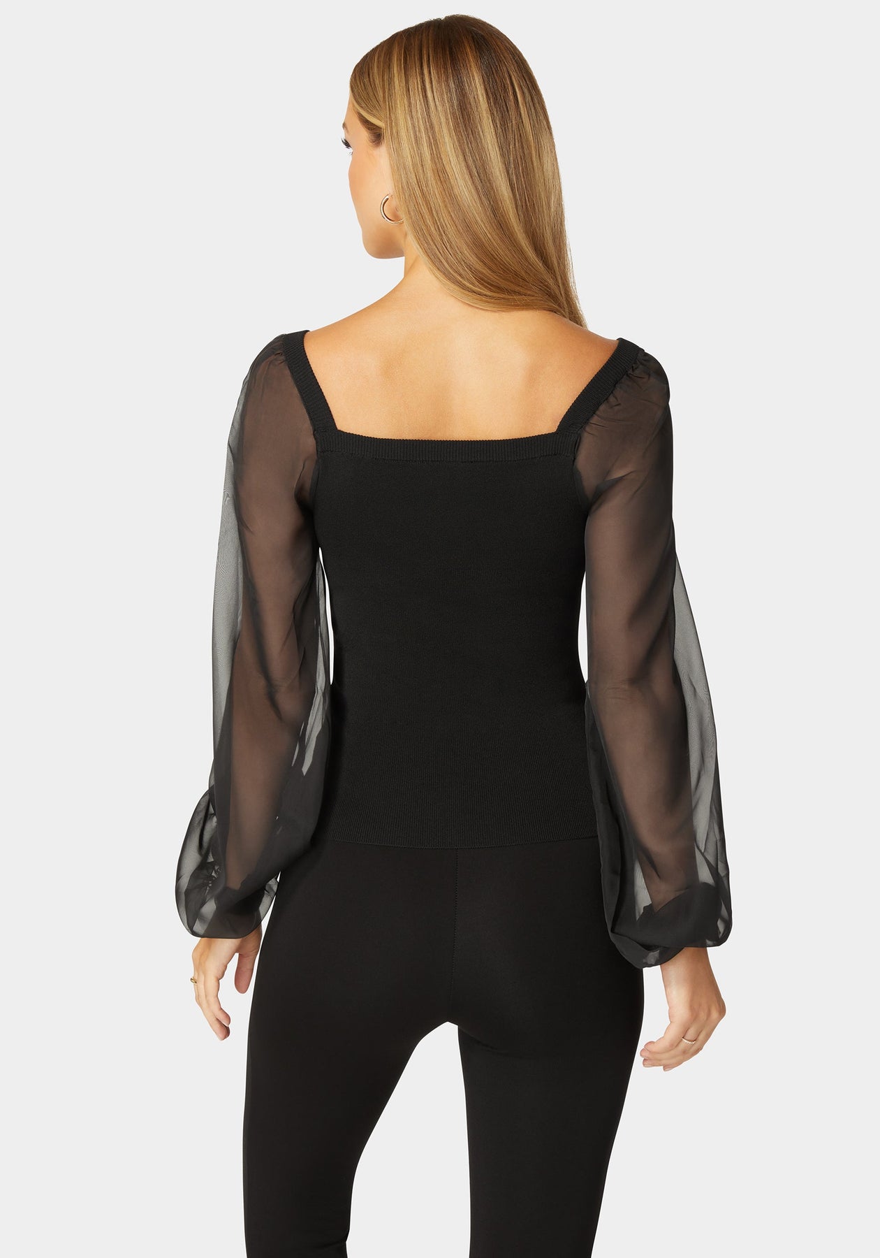 Float through your day with the airy allure of this chiffon balloon sleeve sweater. Its delicate combo of textures is ideal for a romantic evening or a stylish brunch with friends.