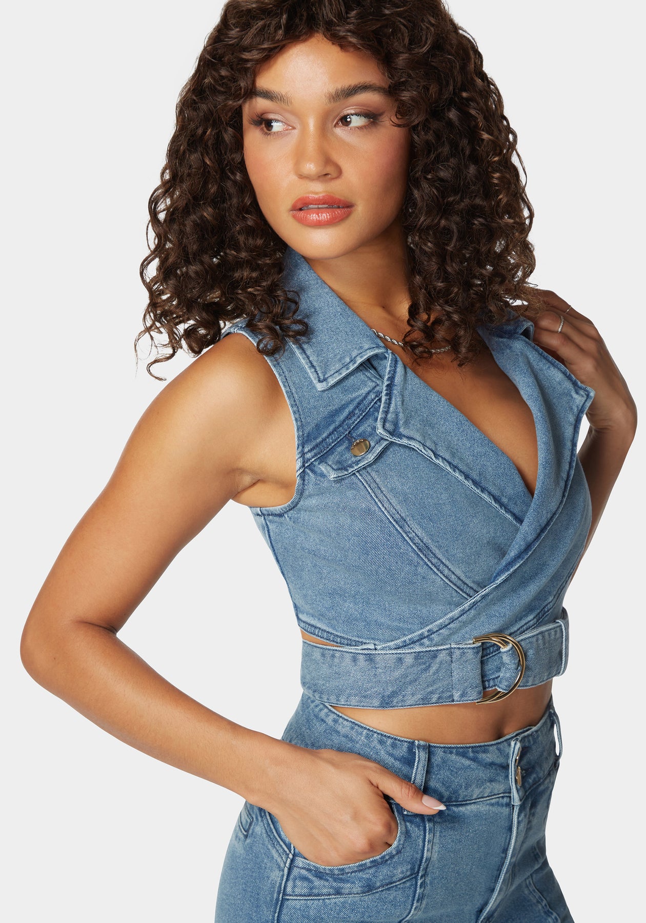 D Ring Belt Denim Wrap Top