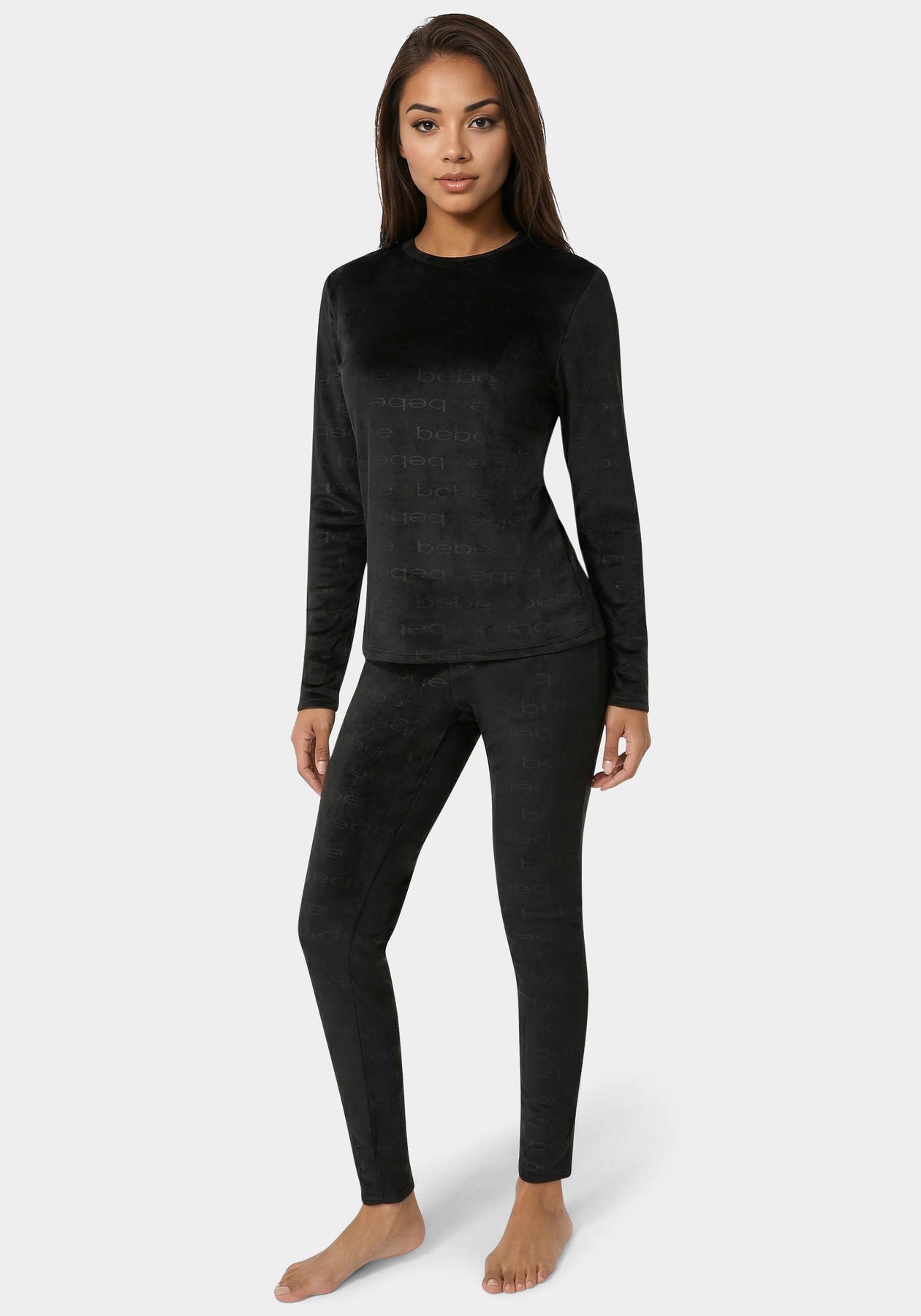 Detail View- 2pc Velour Bebe Louge Sleep Base Layer Set-Black