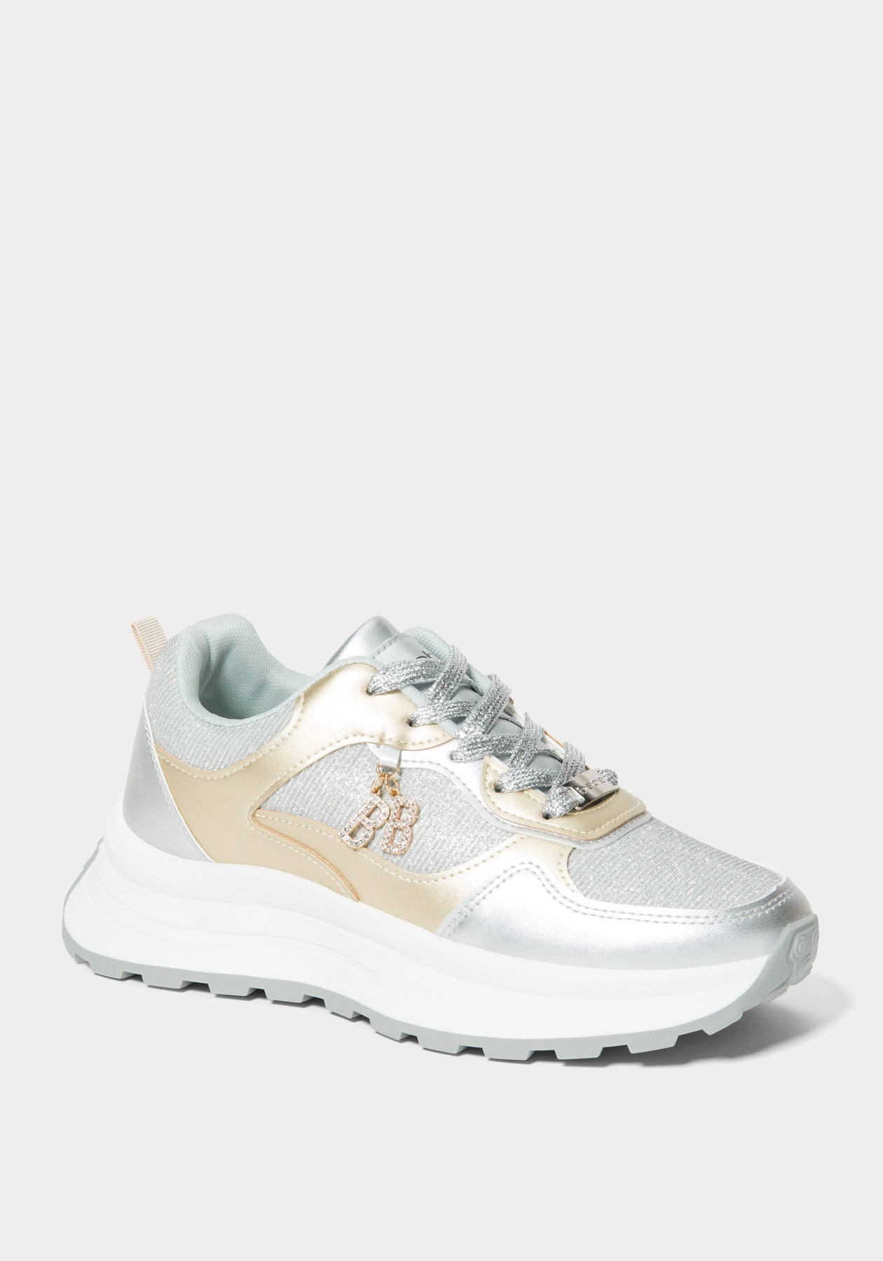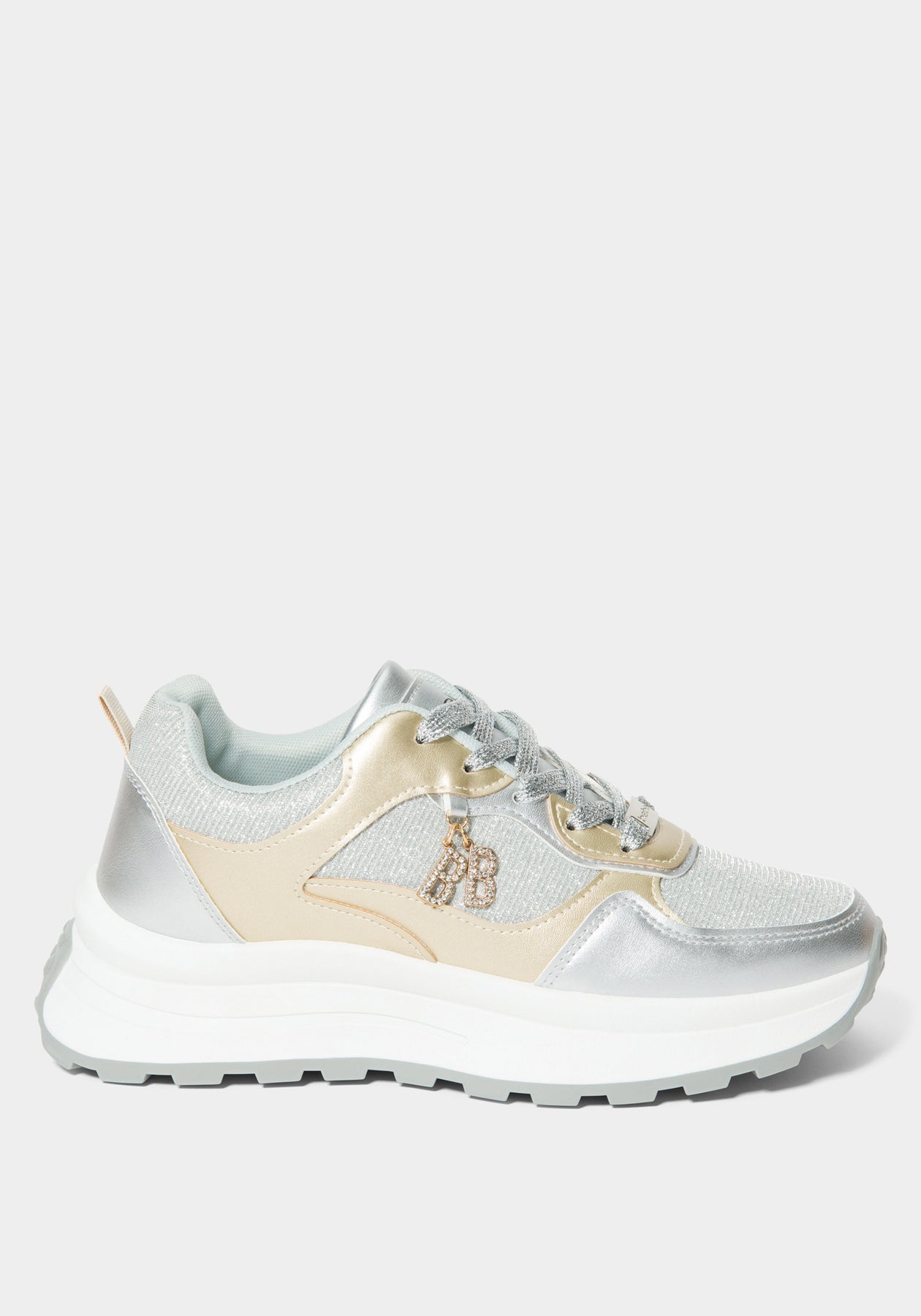 Merge gold and silver in the striking Della Sneaker. This lace-up sneaker, adorned with BB crystal charms, captures the glamorous essence of Ciara. With its mixed metal style and eye-catching tread, the Della is a testament to those who dare to stand out in the crowd.
