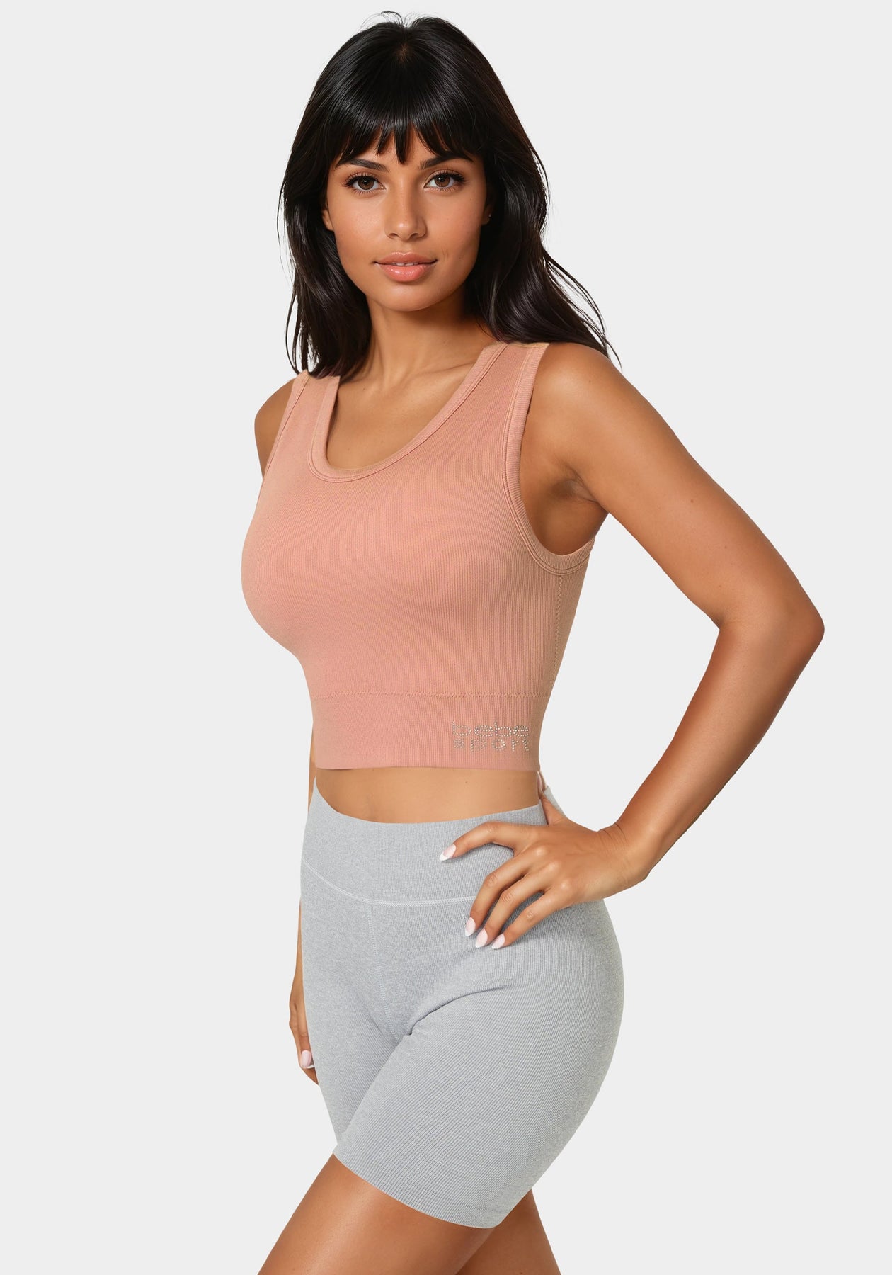 This seamless crop tank features a double-layer front for added support, making it perfect for active or casual wear.
